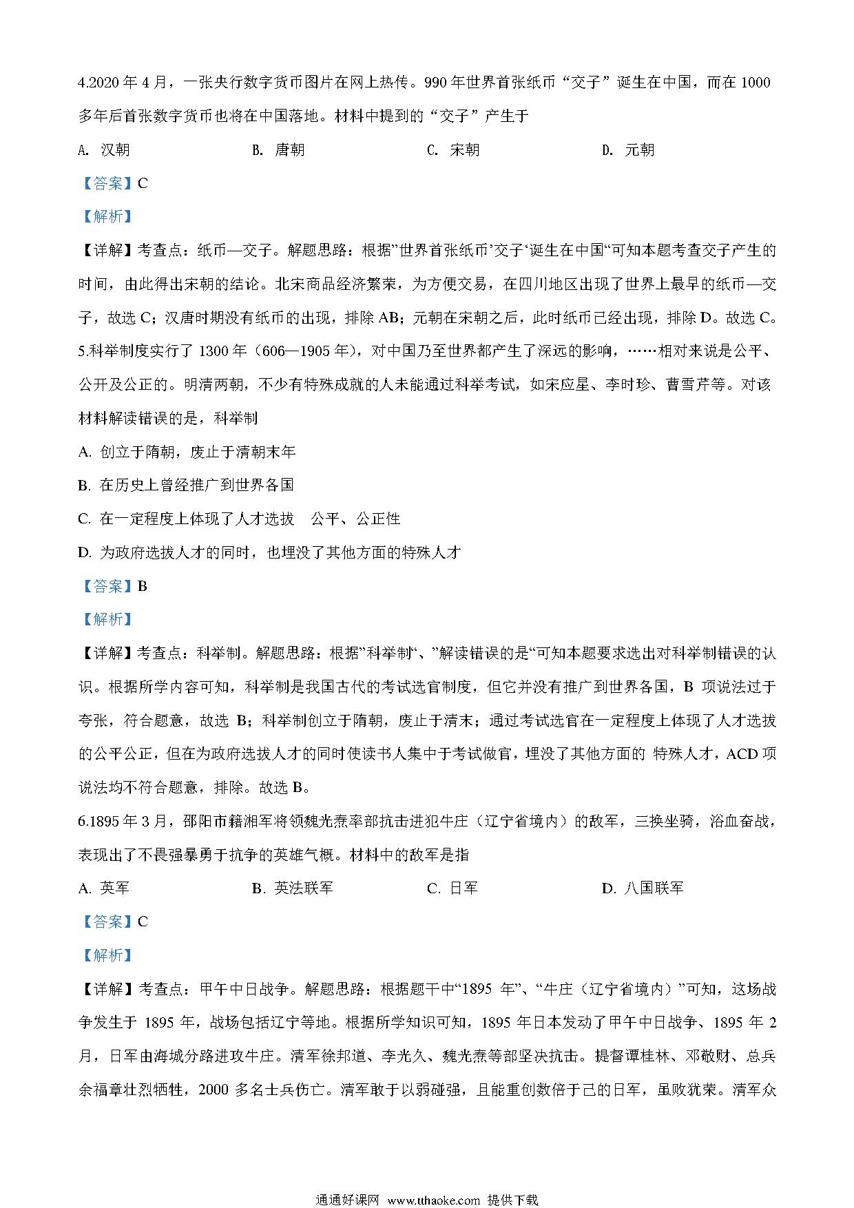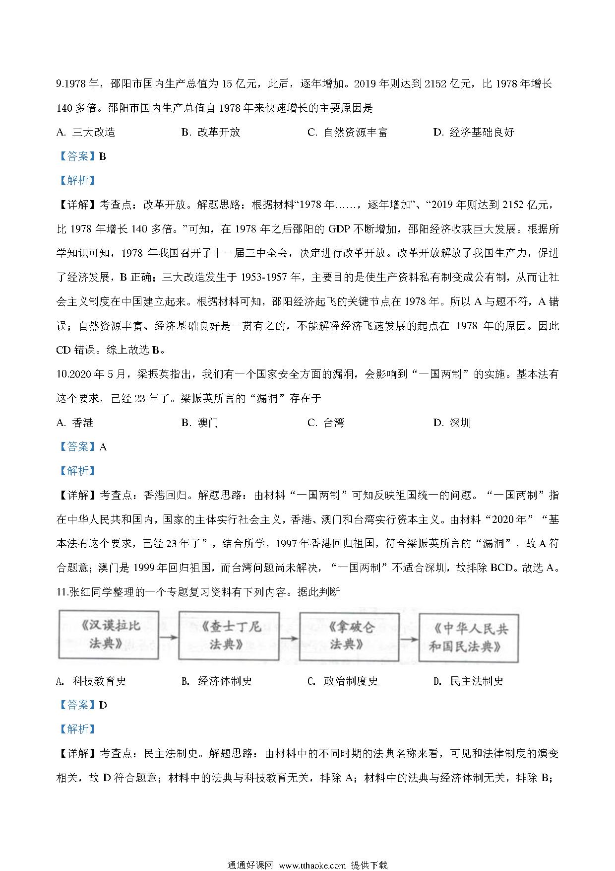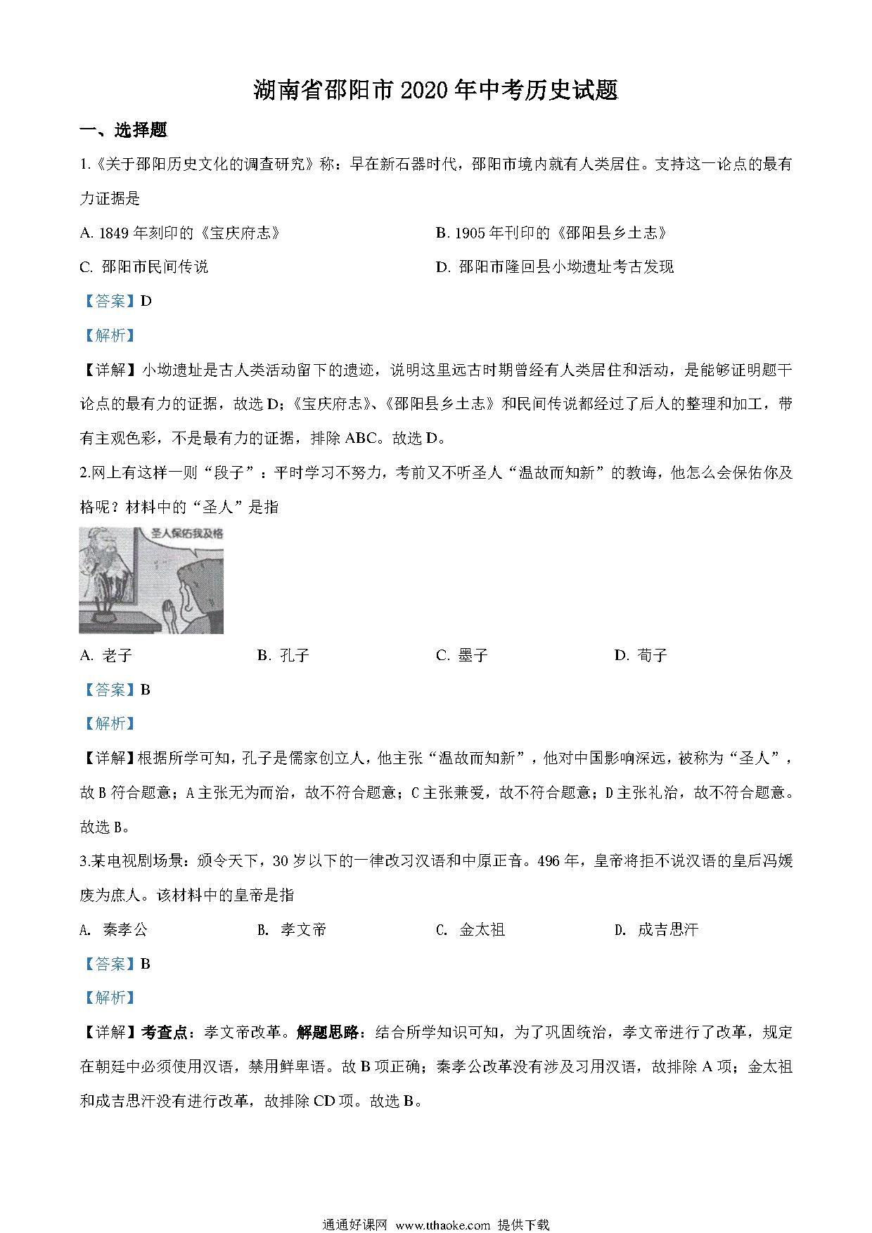 湖南省邵阳市2020年中考历史试题(解析版).pdf
