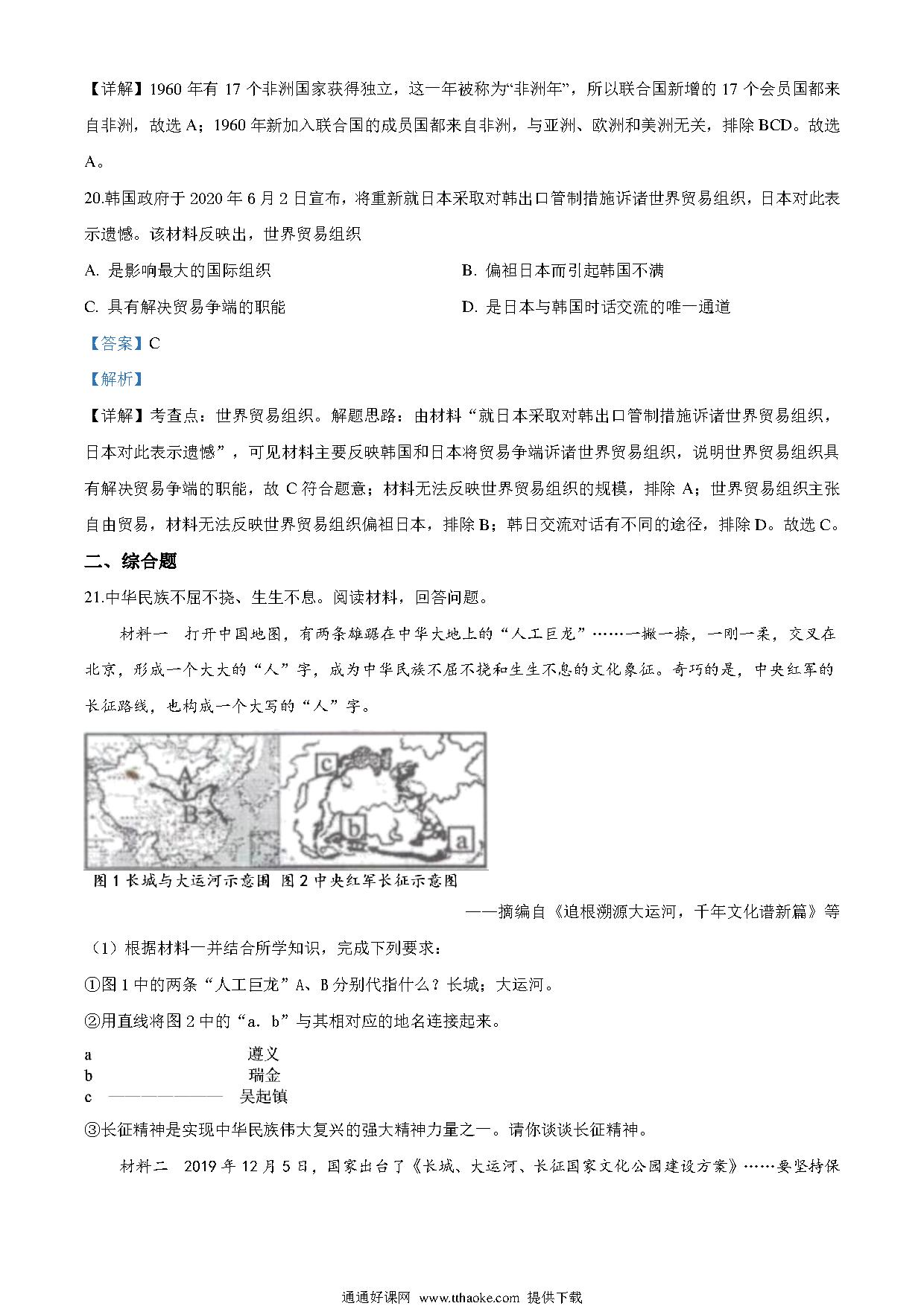 湖南省邵阳市2020年中考历史试题(解析版)
