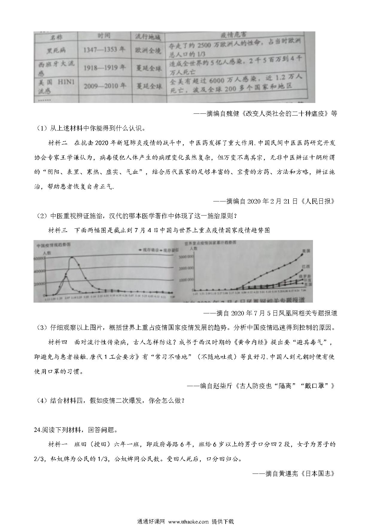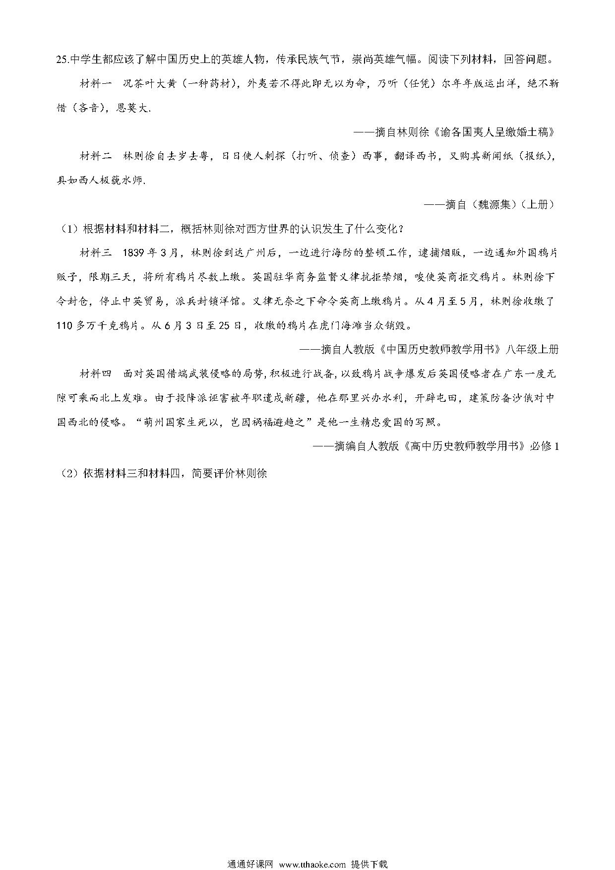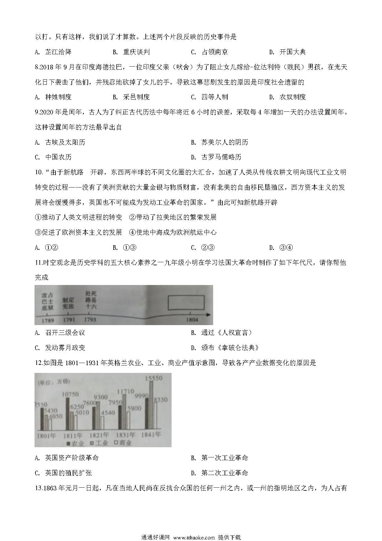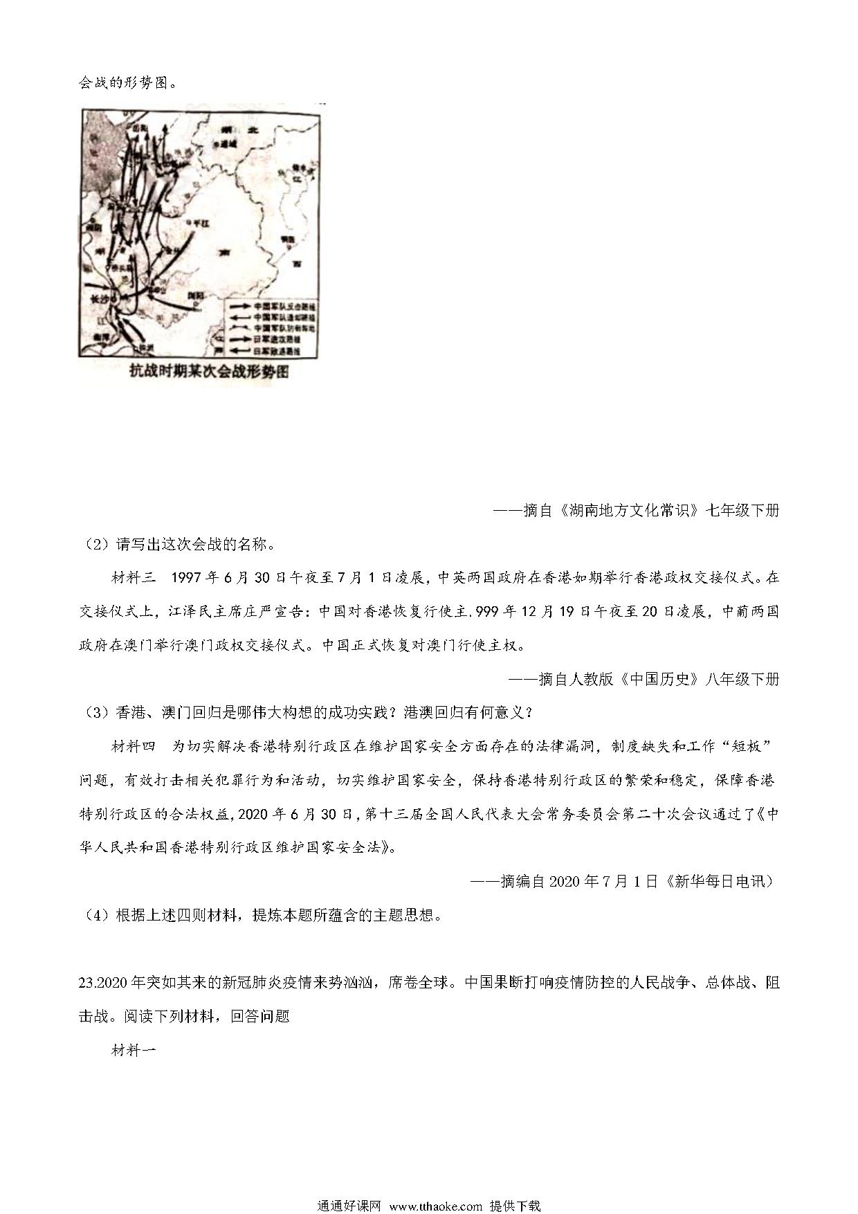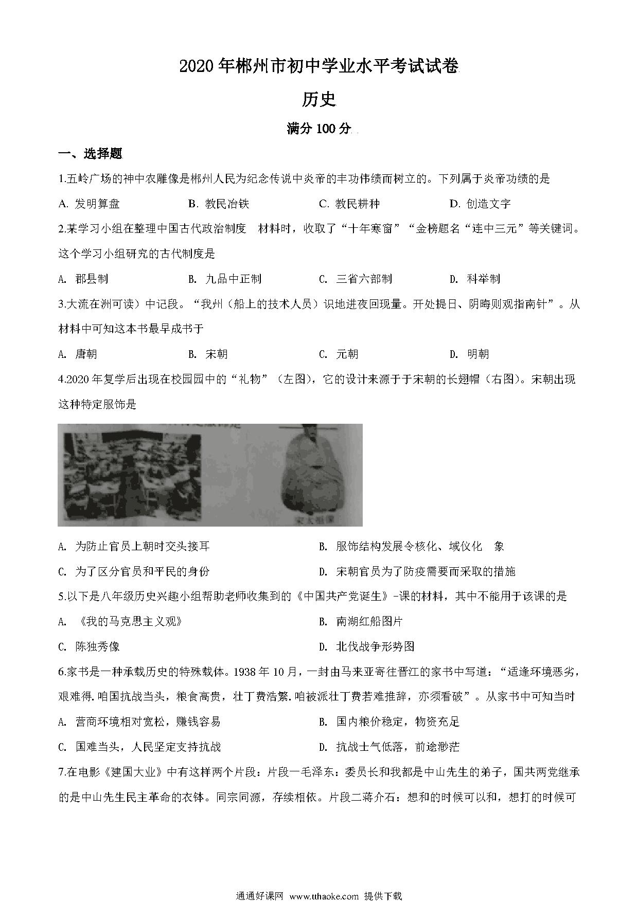 湖南省郴州市2020年中考历史试题(原卷版).pdf