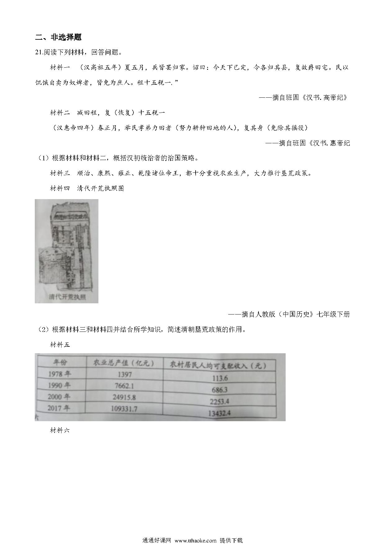 四川省攀枝花市2017年中考历史真题试题(含答案)