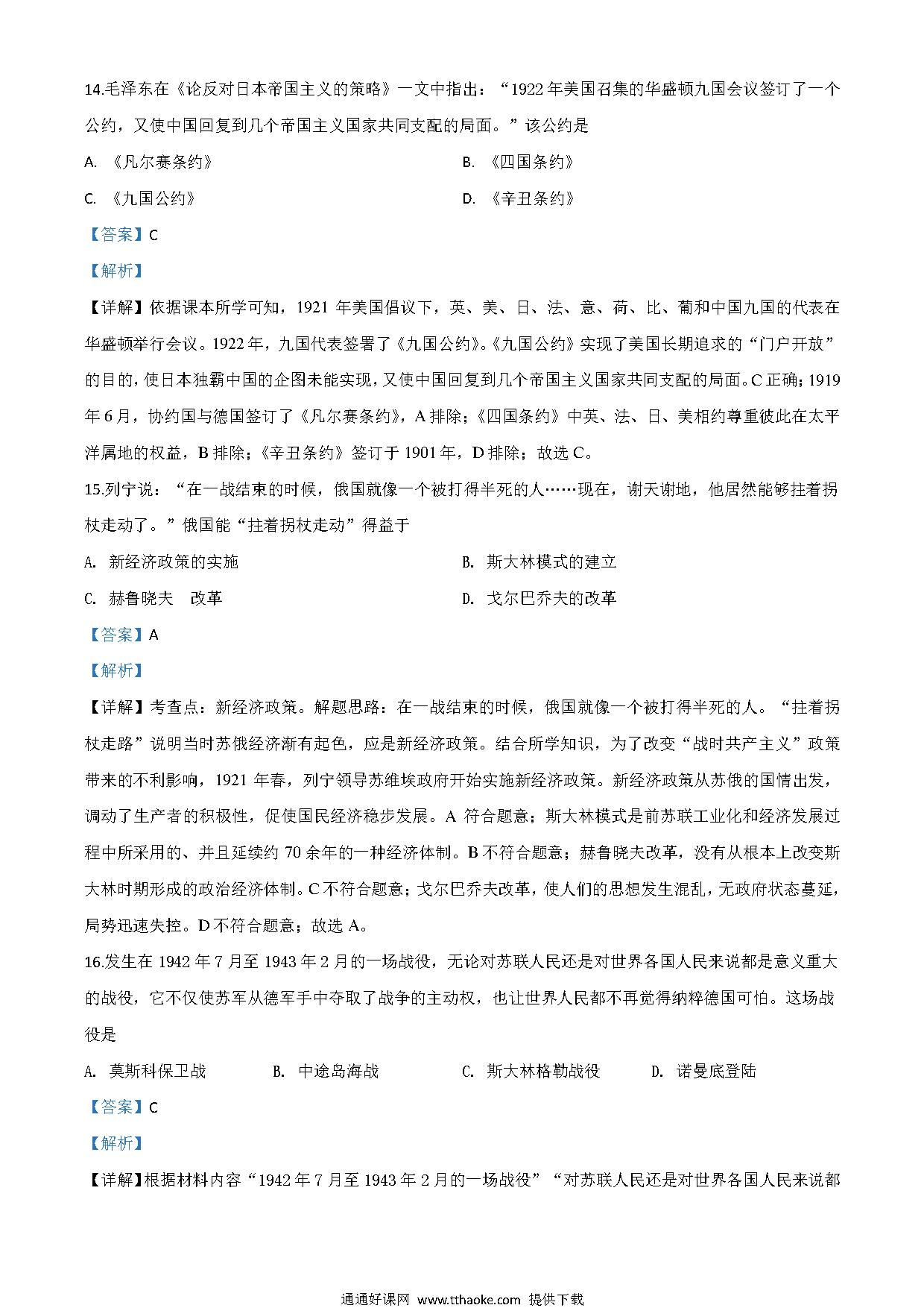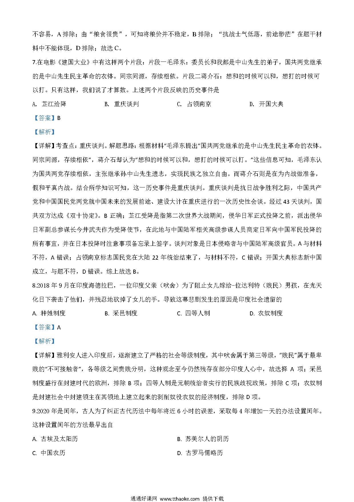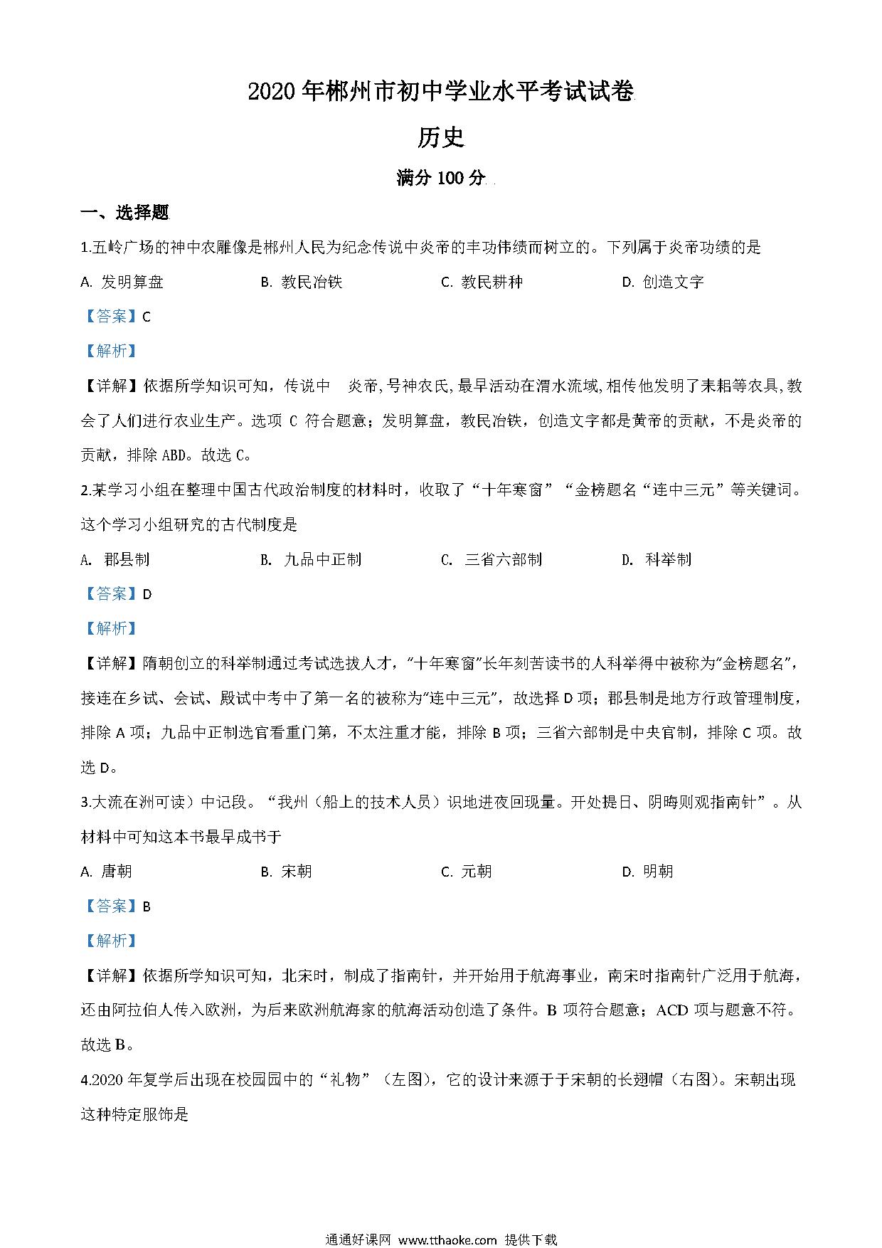 湖南省郴州市2020年中考历史试题(解析版).pdf