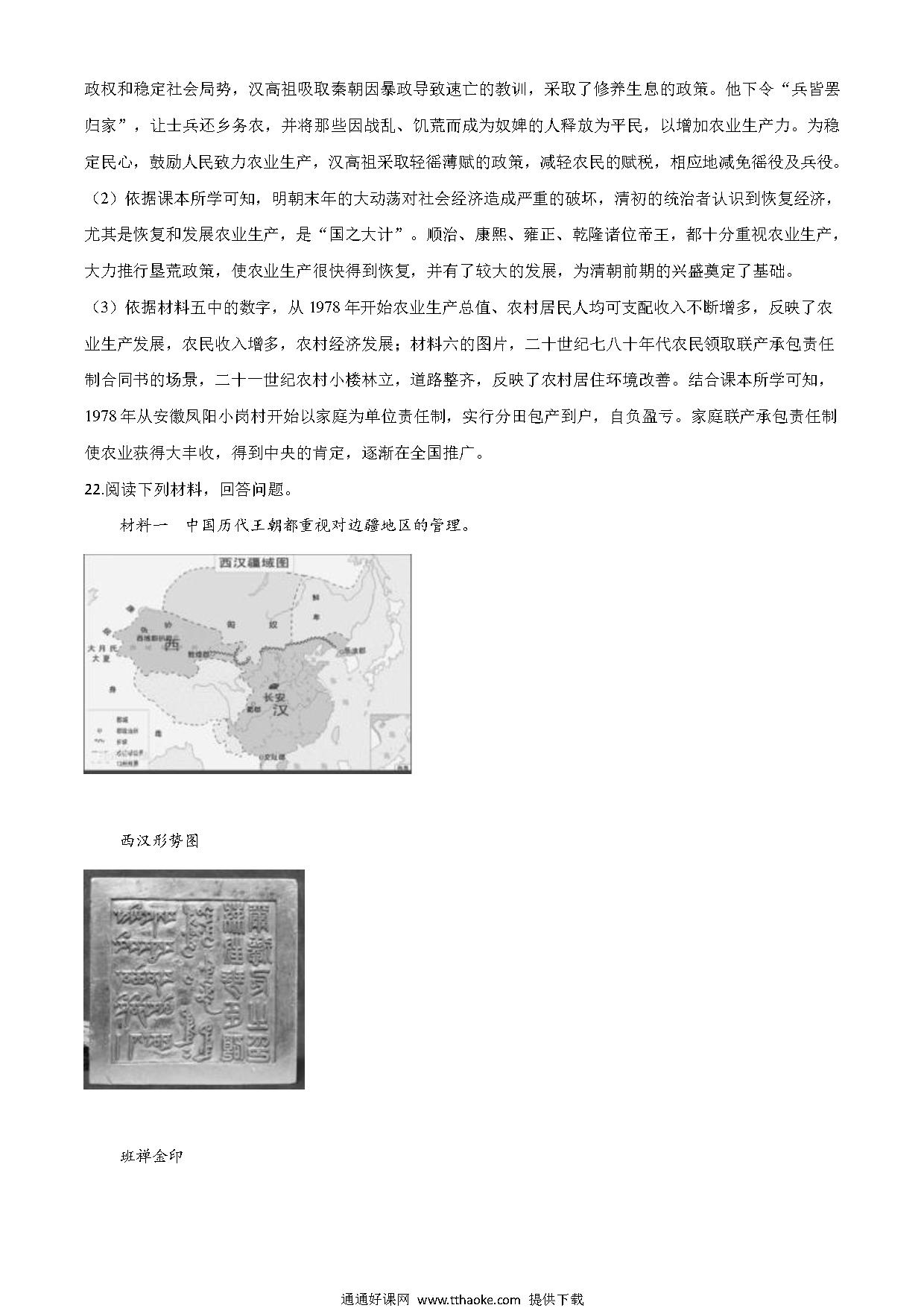 新疆乌鲁木齐市2017年中考历史真题试题(含解析)
