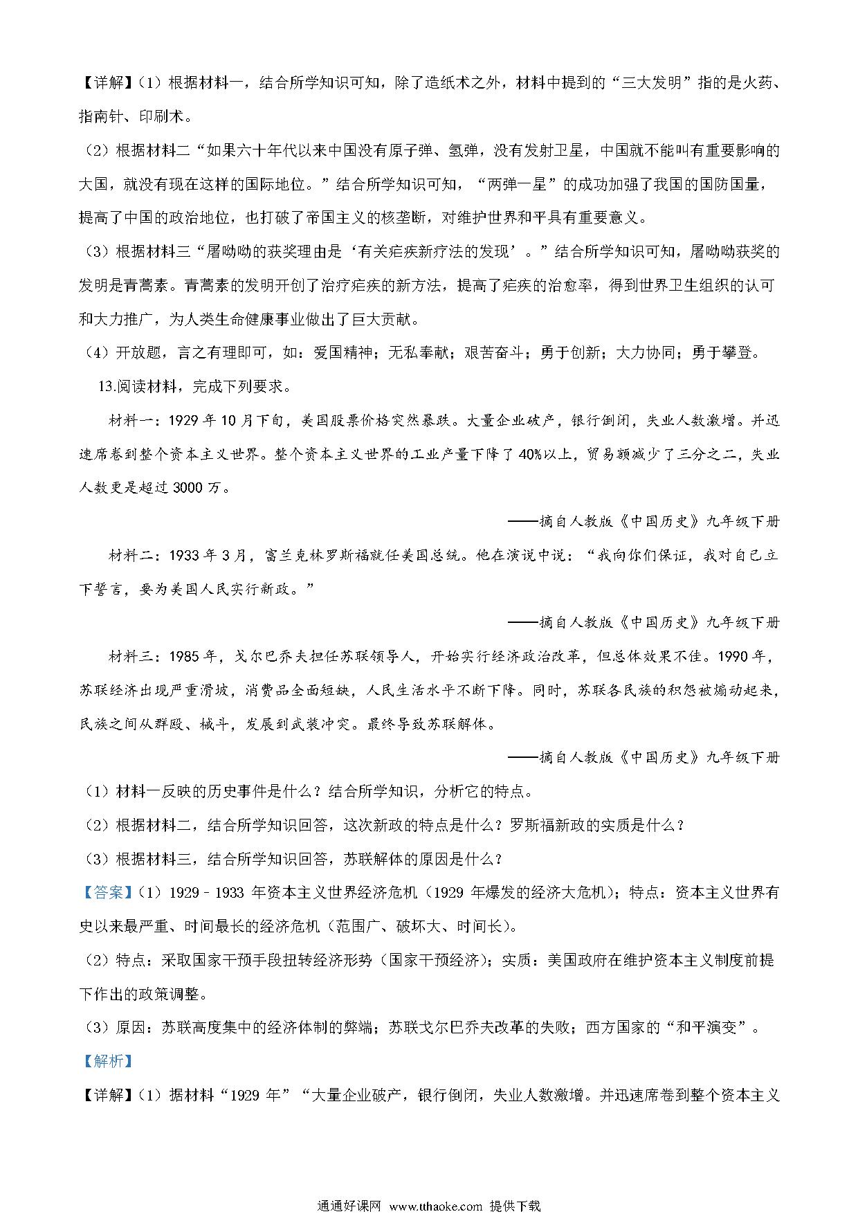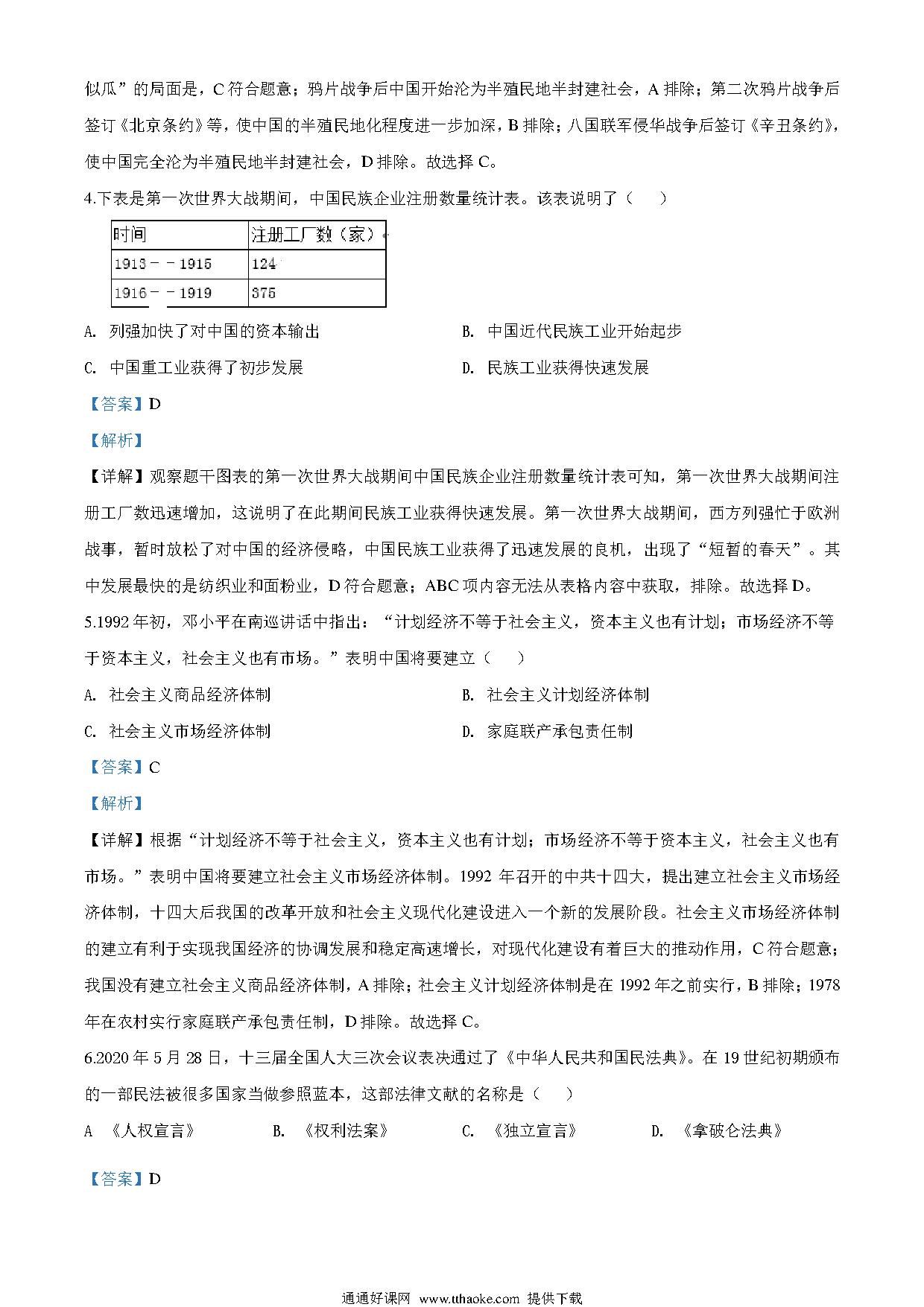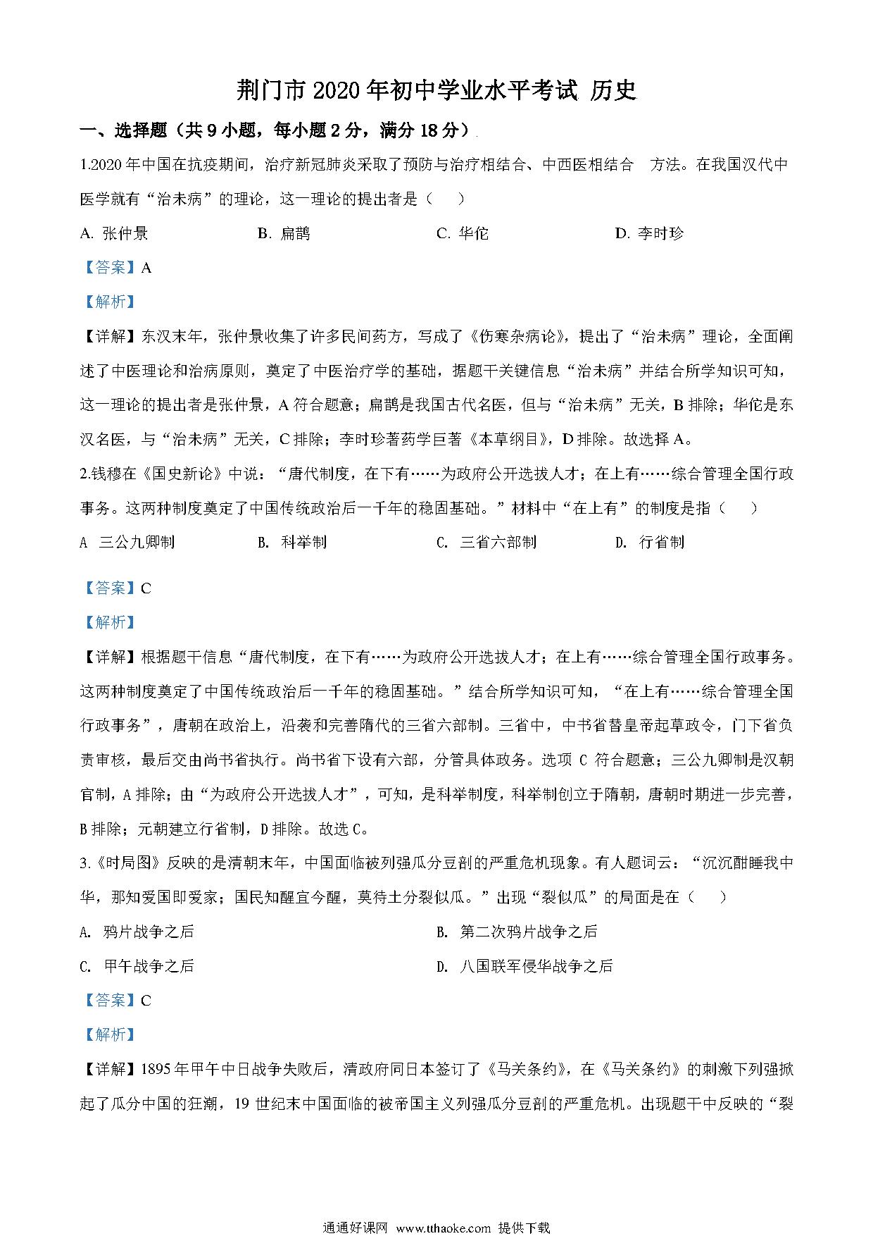湖北省荆门市2020年中考历史试题(解析版).pdf