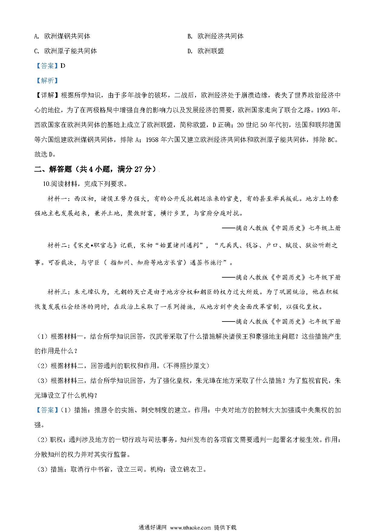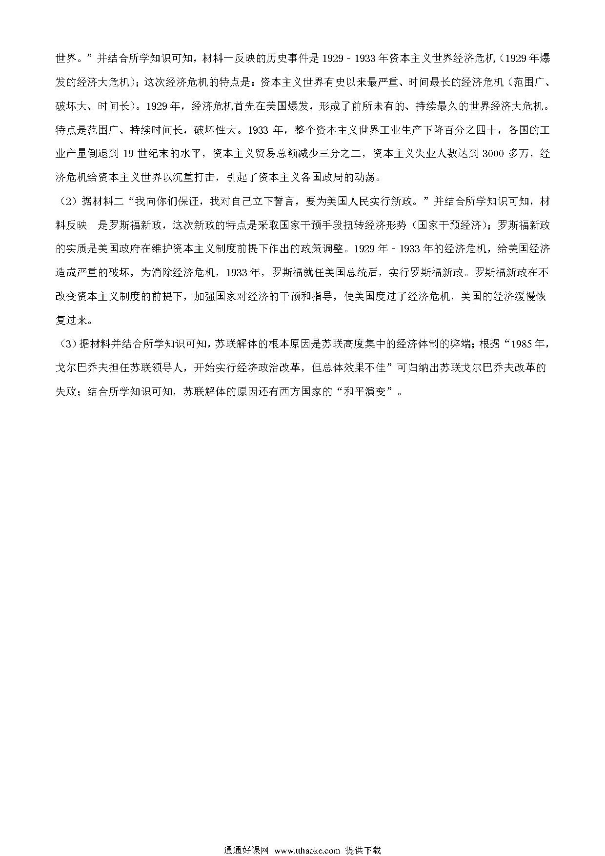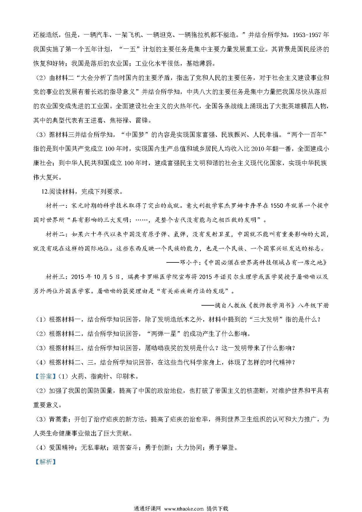 湖北省荆门市2020年中考历史试题(解析版)