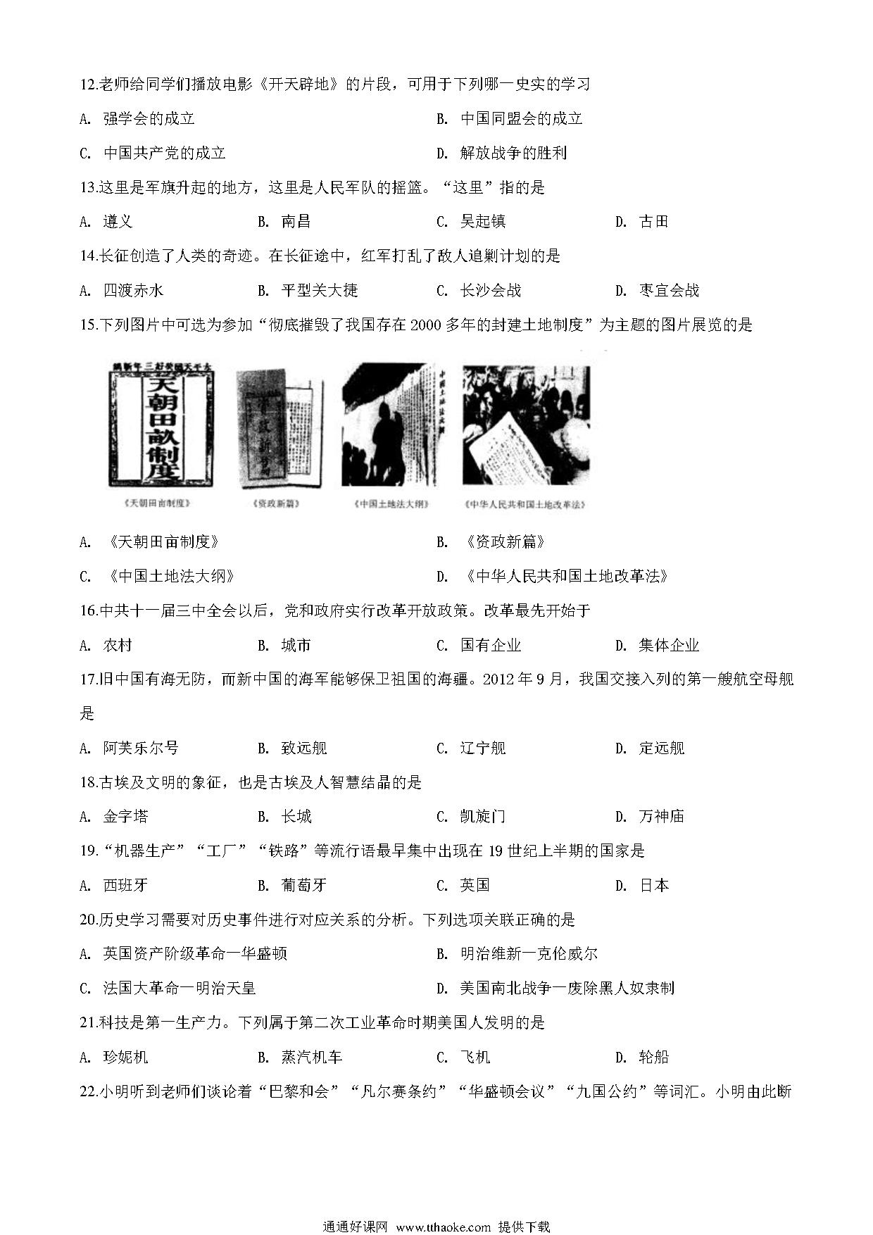 四川省攀枝花市2017年中考历史真题试题(含答案)