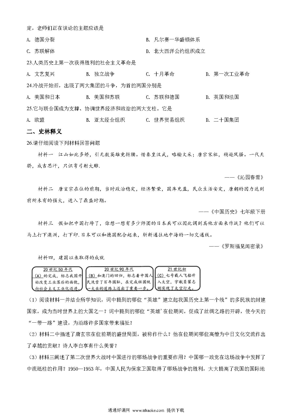 黑龙江省齐齐哈尔市2020年中考历史试题(原卷版)