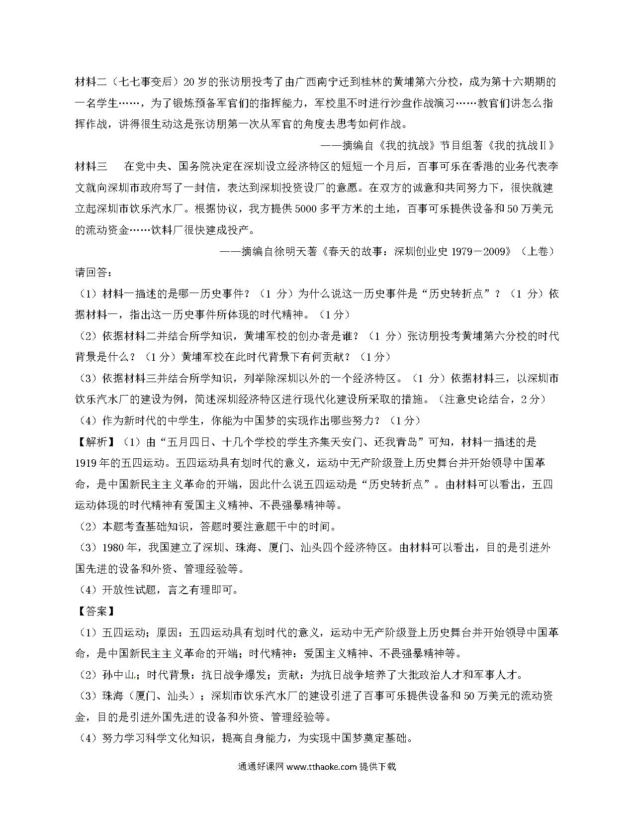 广西北部湾经济开发区2018年中考历史真题试题(含解析)