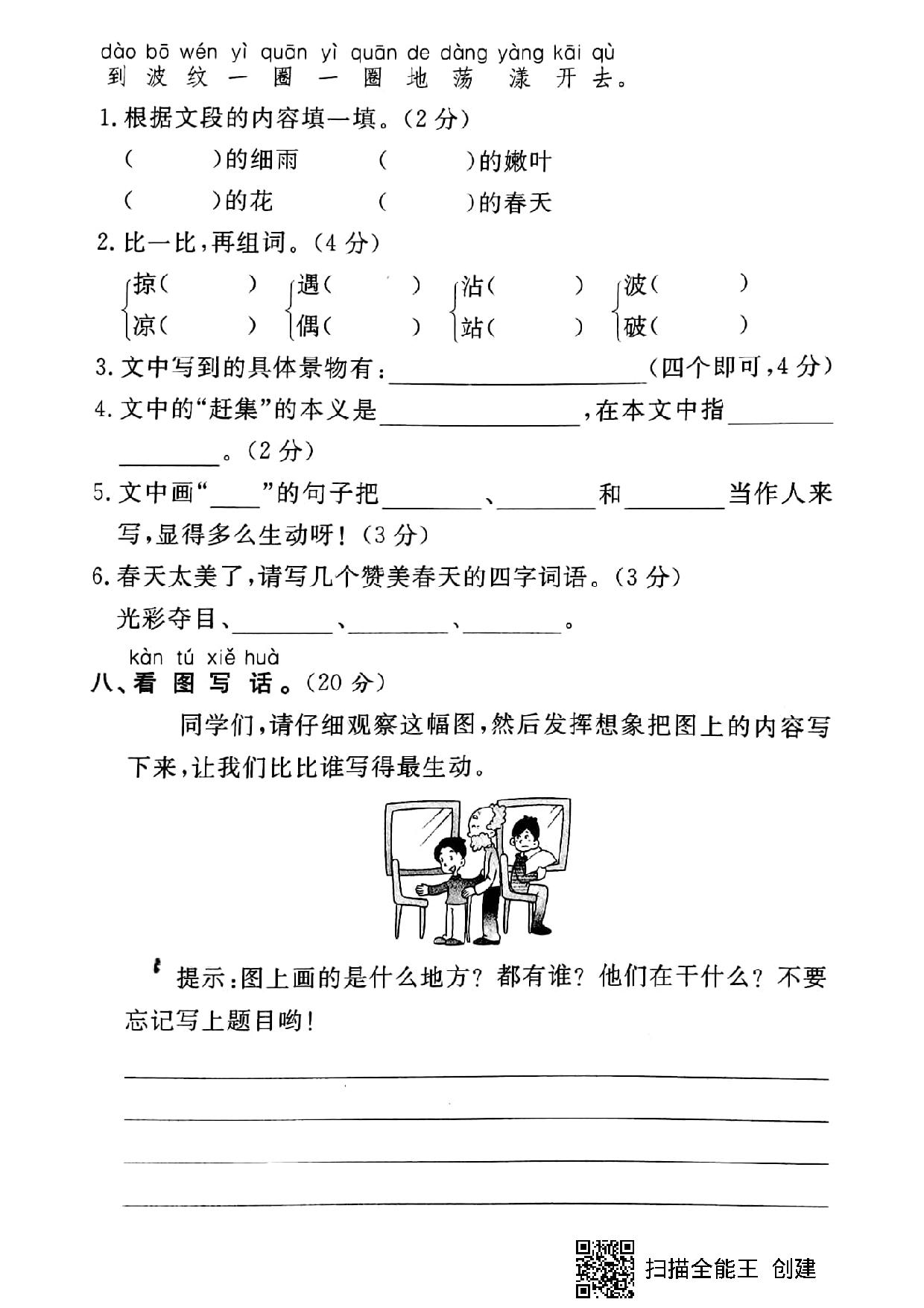 2024部编版二年级语文下学期期末测试卷免费下载打印(附答案)