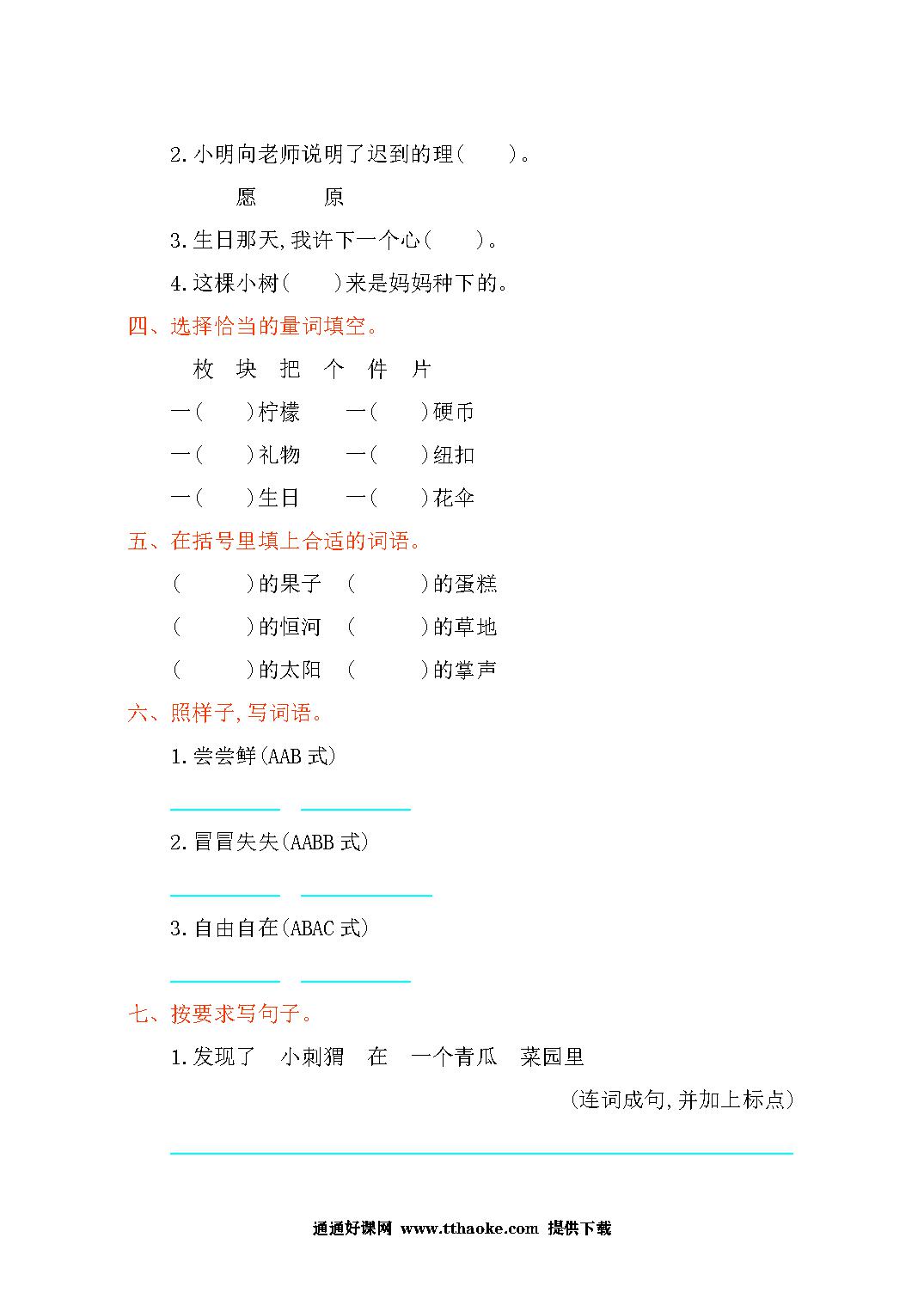 西师大版二年级语文下册第三单元提升测试卷及答案.pdf