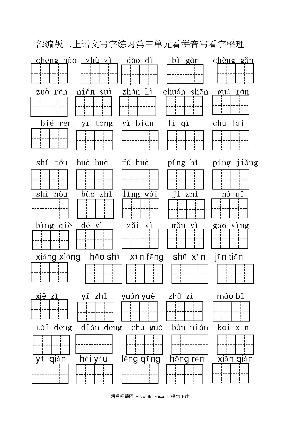 部编版二上语文写字练习第三单元看拼音写汉字整理