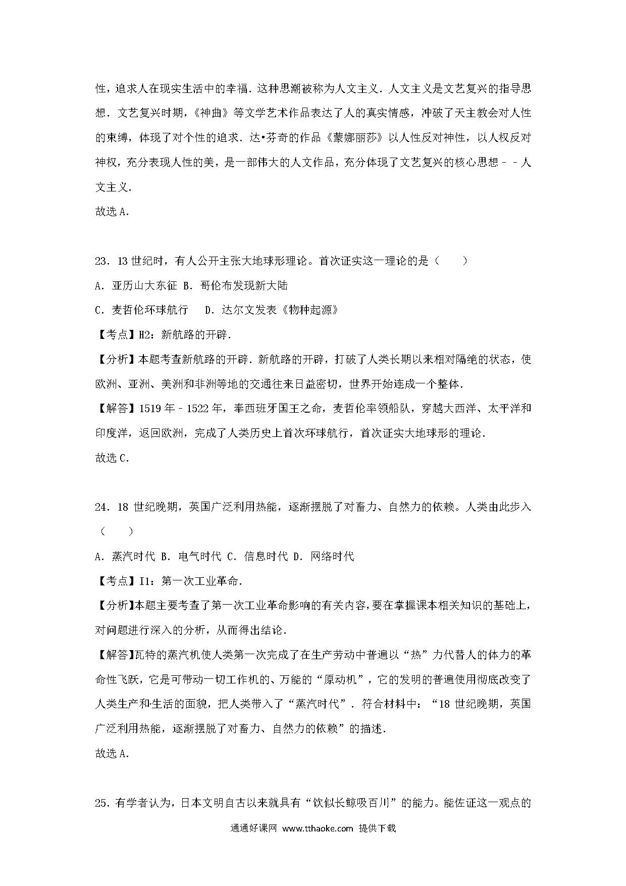 浙江省杭州市2017年中考历史真题试题(含解析)