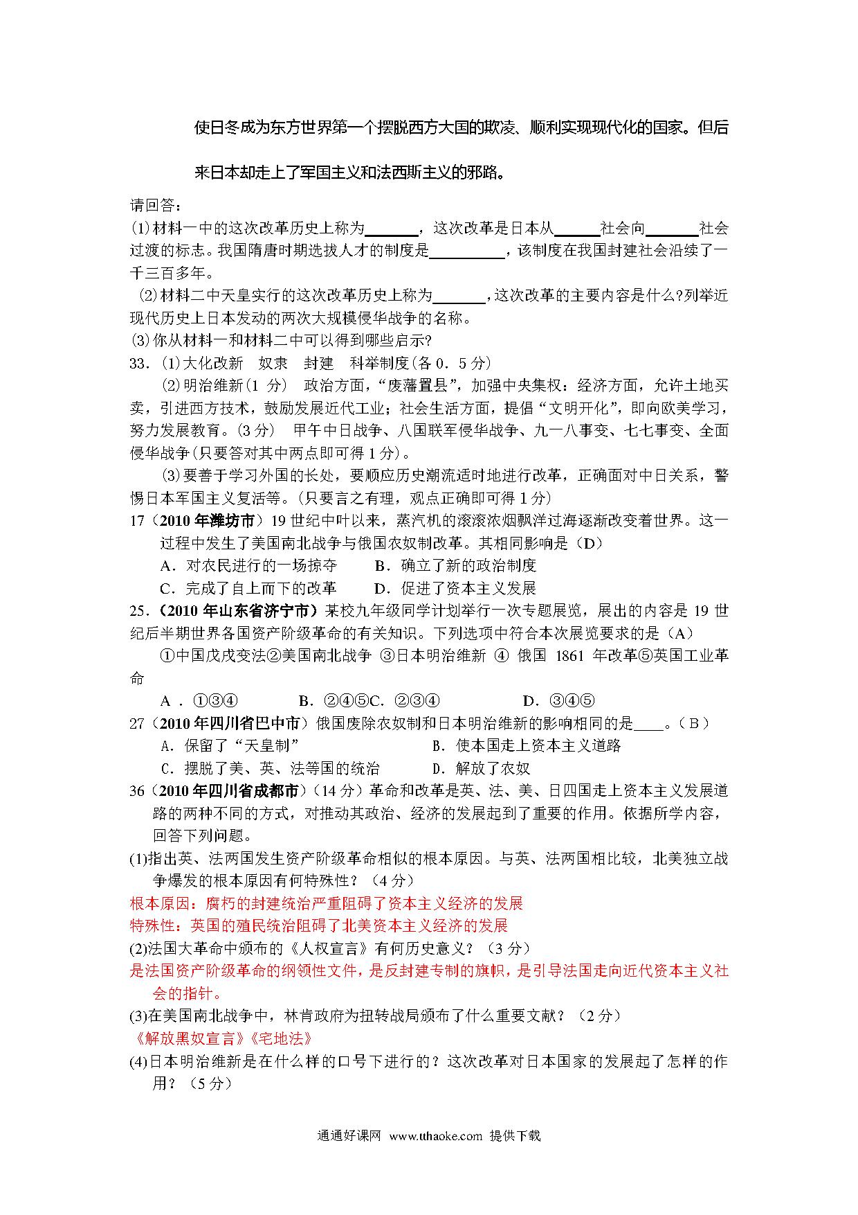 新疆乌鲁木齐市2017年中考历史真题试题(含解析)