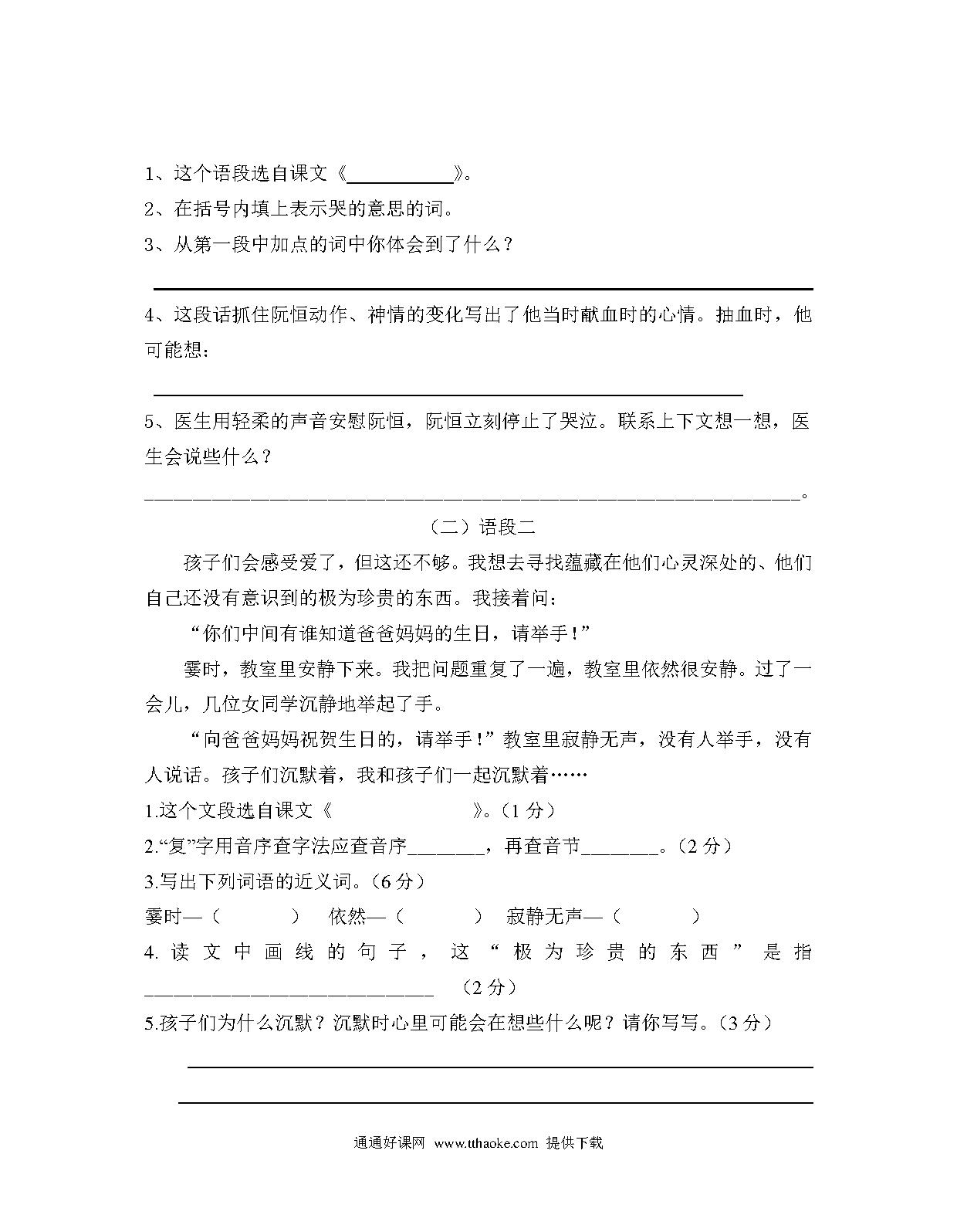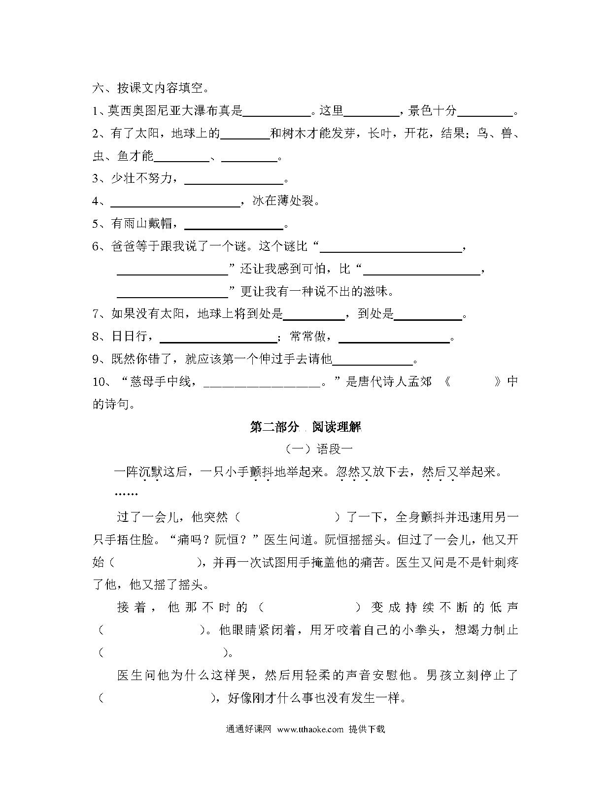 部编版2022-2023三年级语文上册第六单元测试卷可下载(附答案)