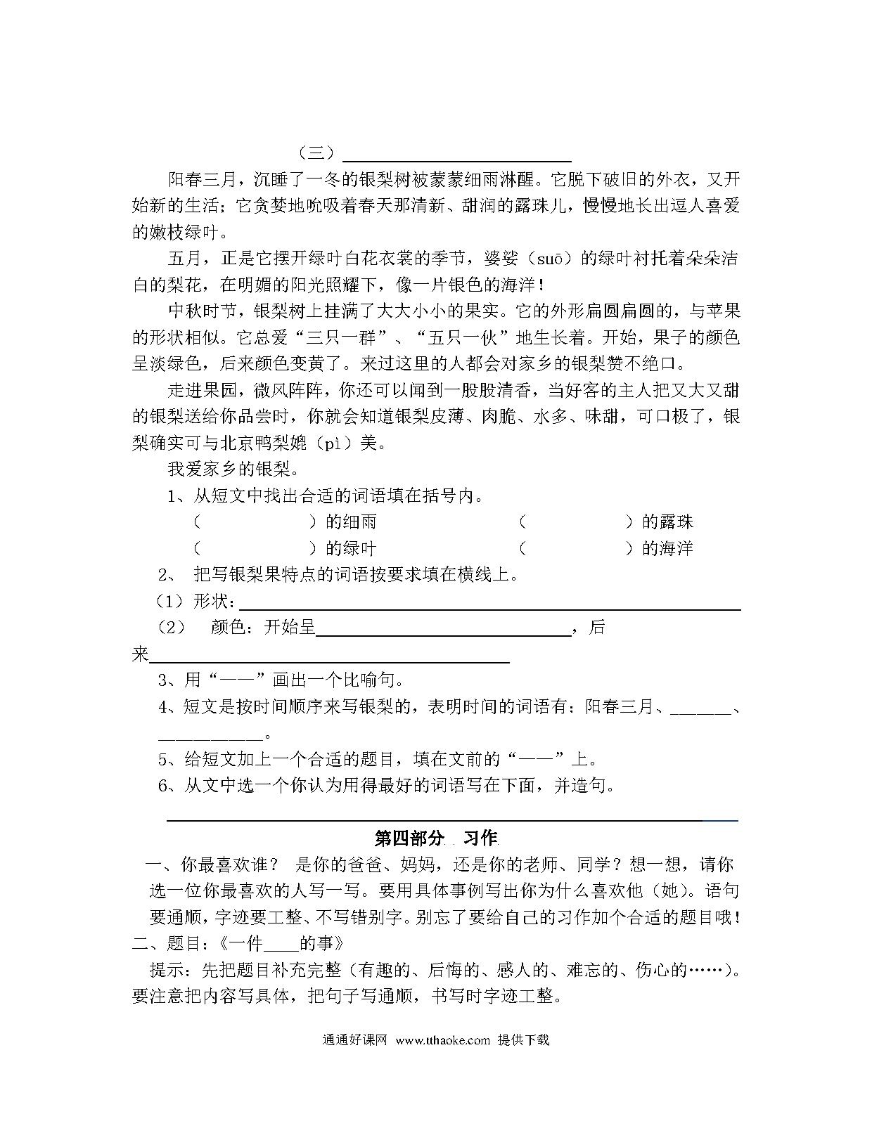 部编版2023年三年级语文下册第三单元达标测试卷可下载打印(附答案)