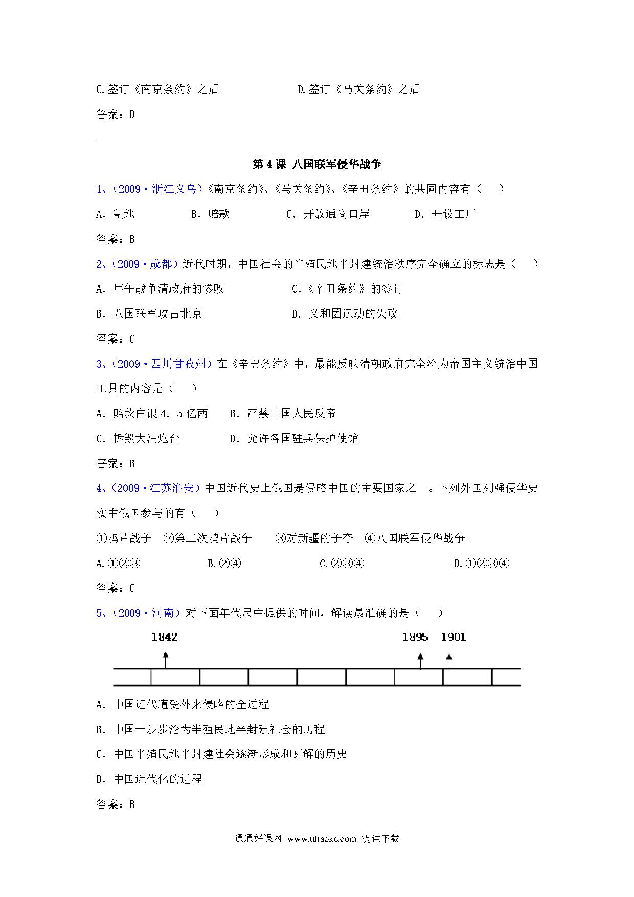历史中考专项训练:选择题-列强的侵略和中国人民的抗争.pdf