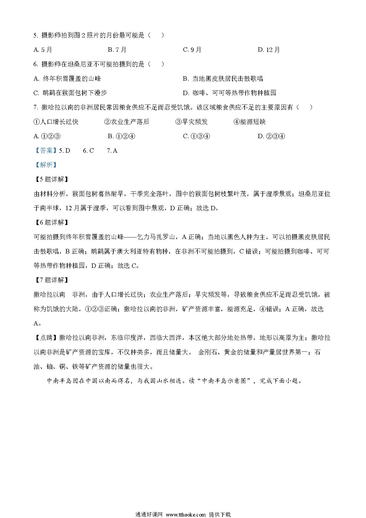 2022年内蒙古通辽市中考地理真题(原卷版)