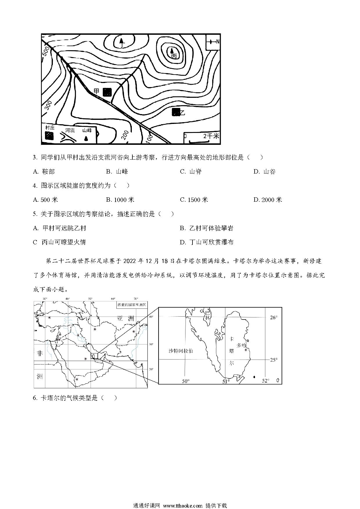 2022年内蒙古通辽市中考地理真题(原卷版)