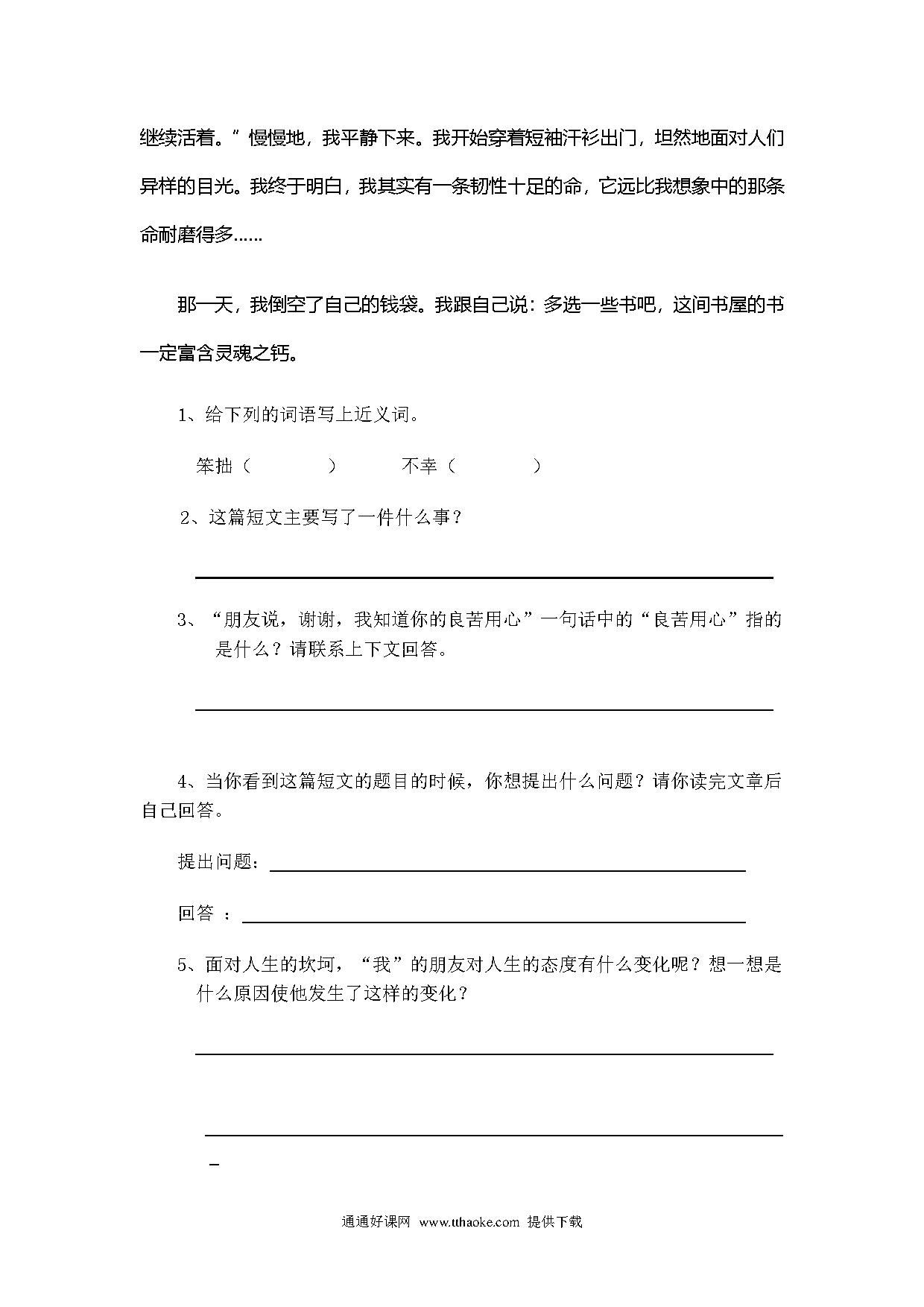 五年级课外阅读复习题