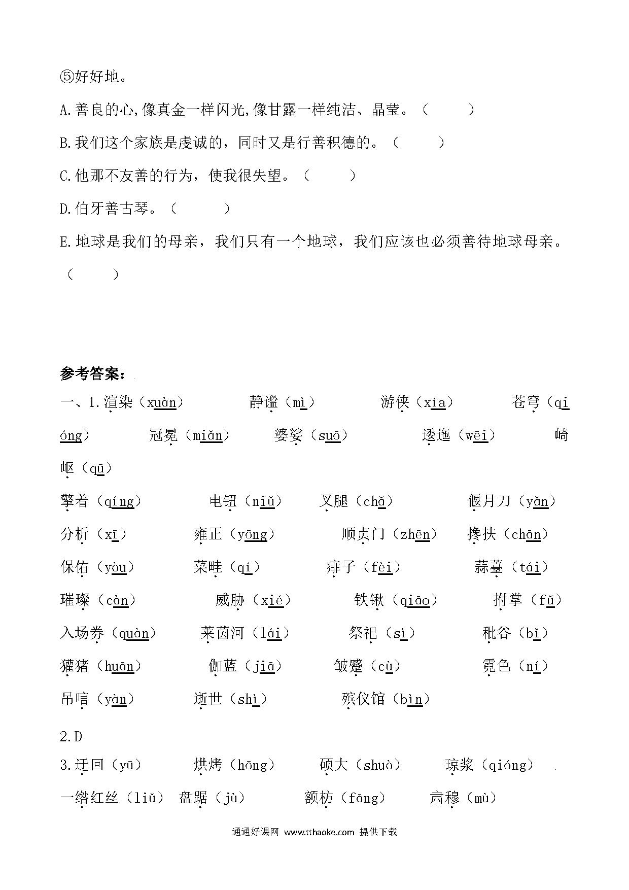2021年部编版六年级语文上册生字专项复习题及答案.pdf