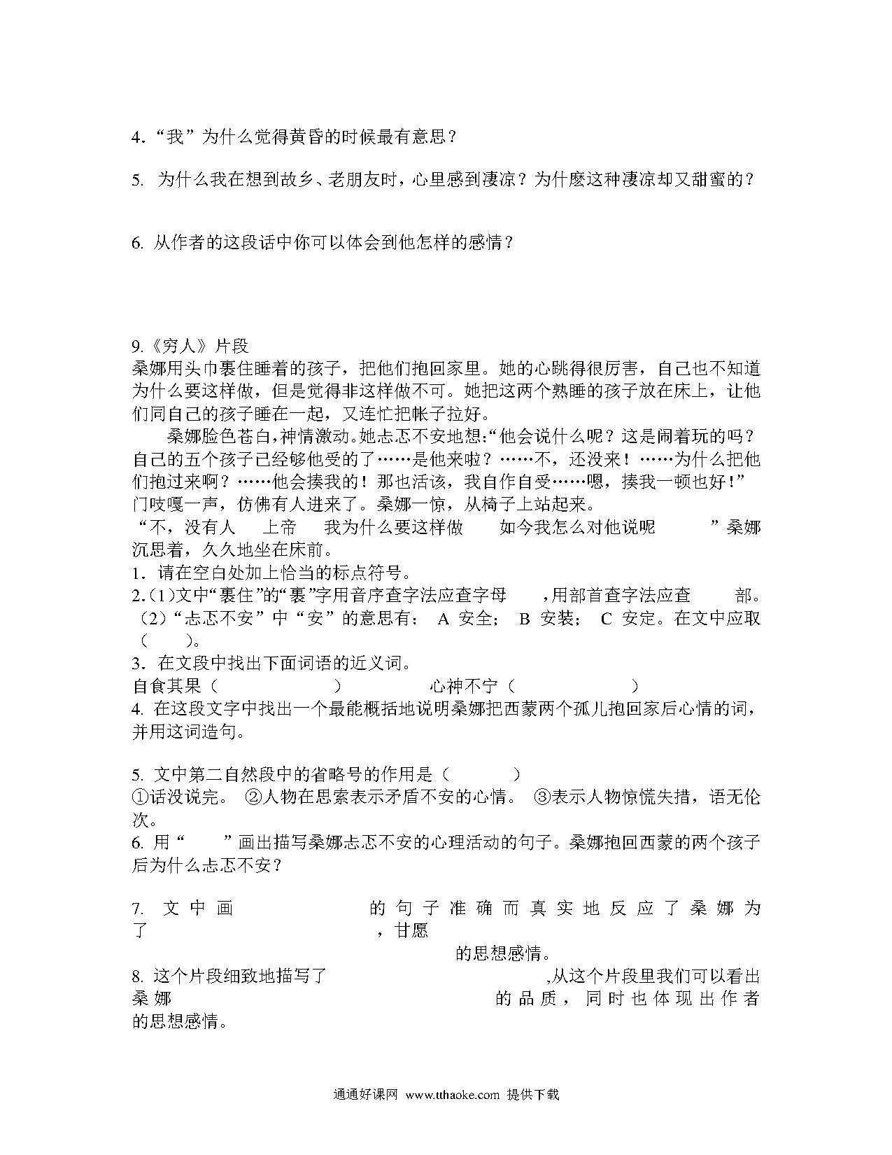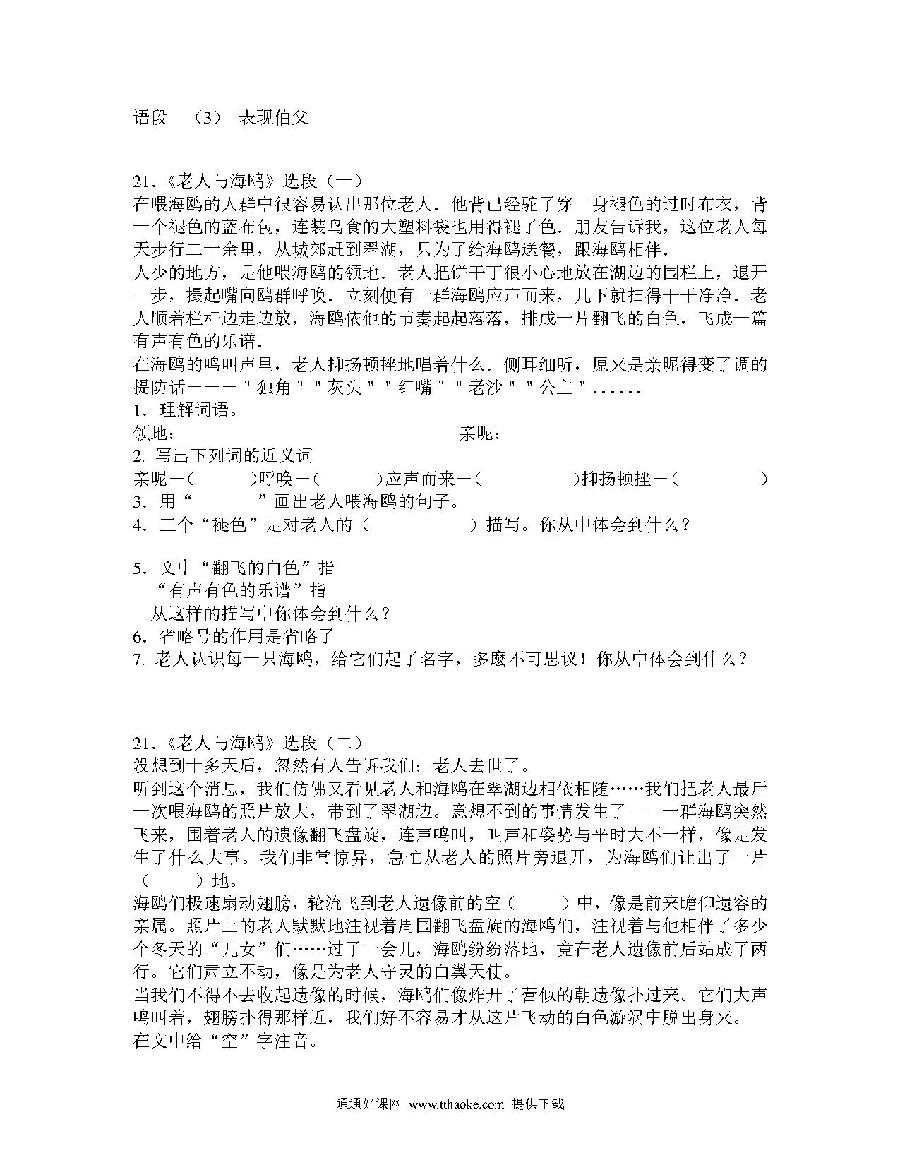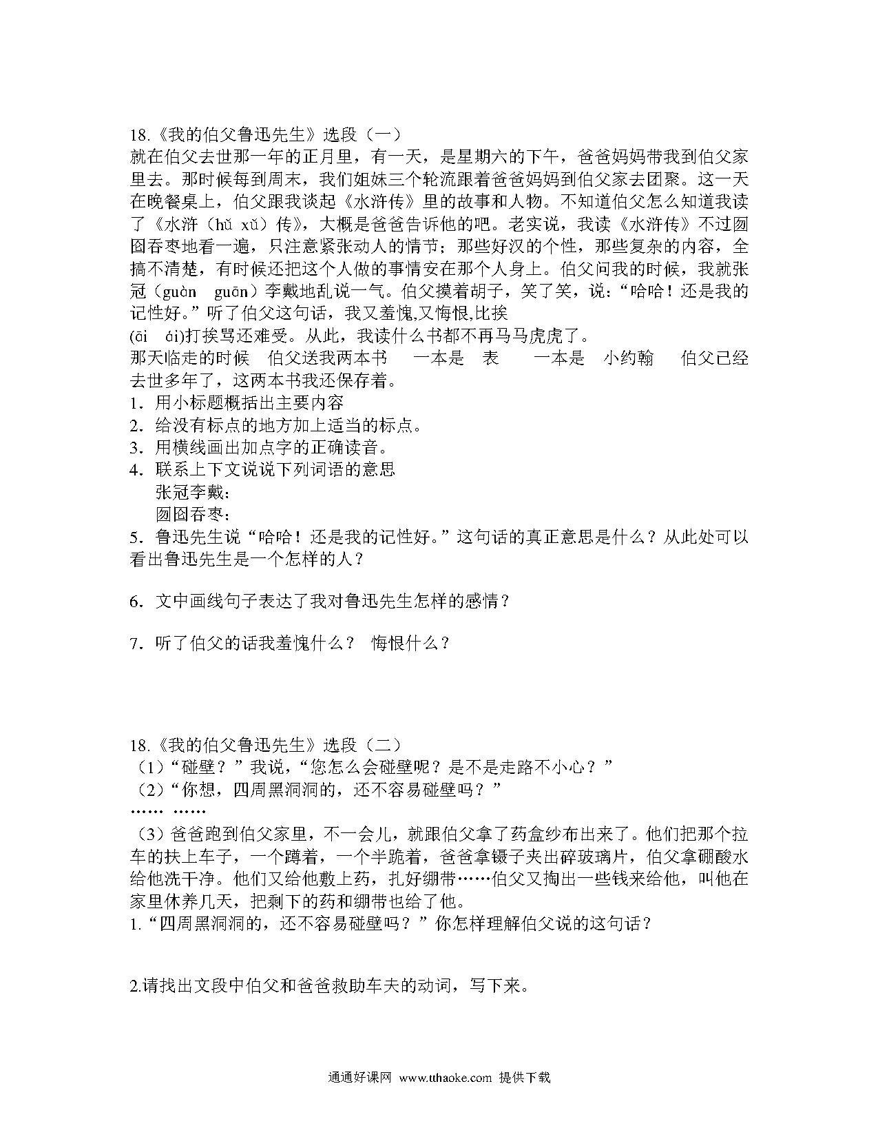 2022年部编版六年级语文上册第一单元课外阅读训练题附答案(可下载打印)