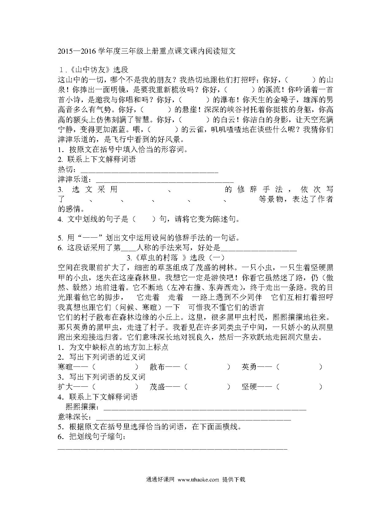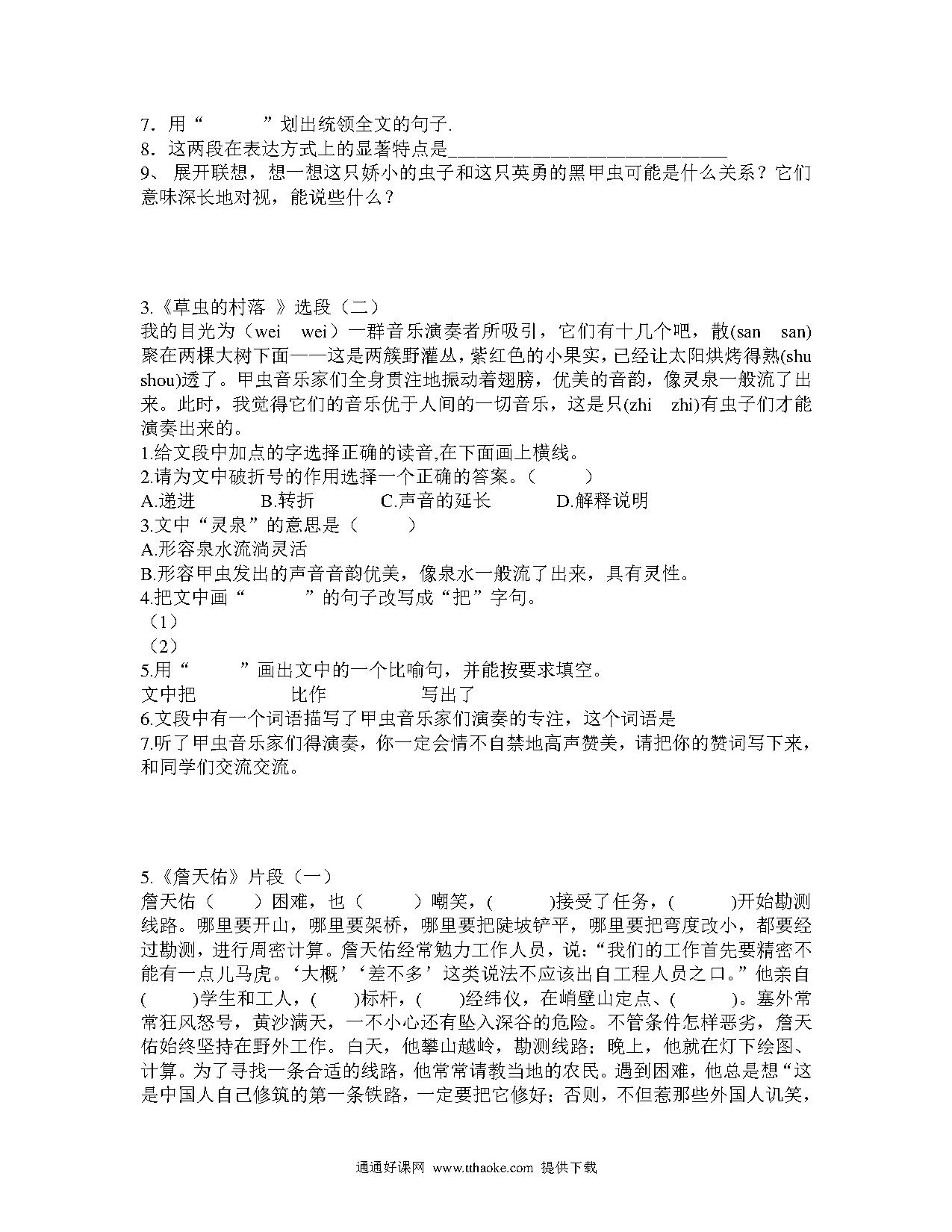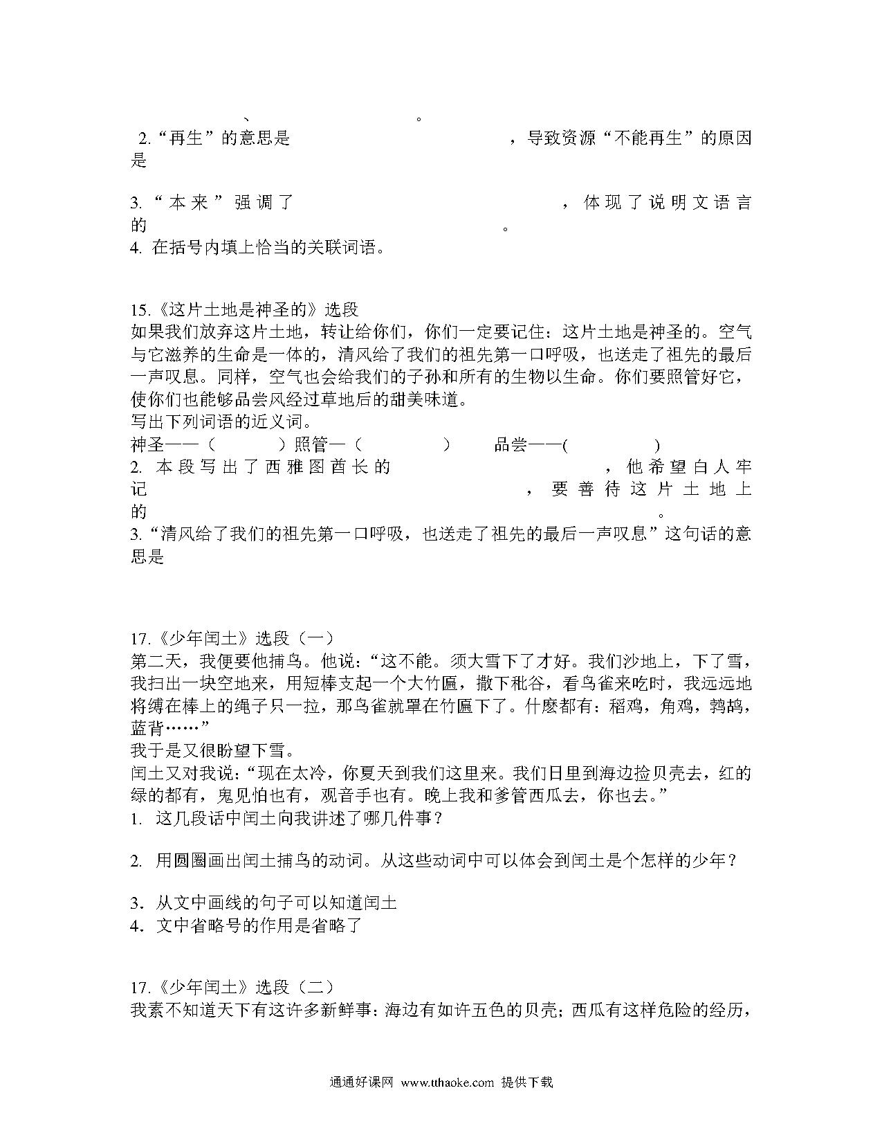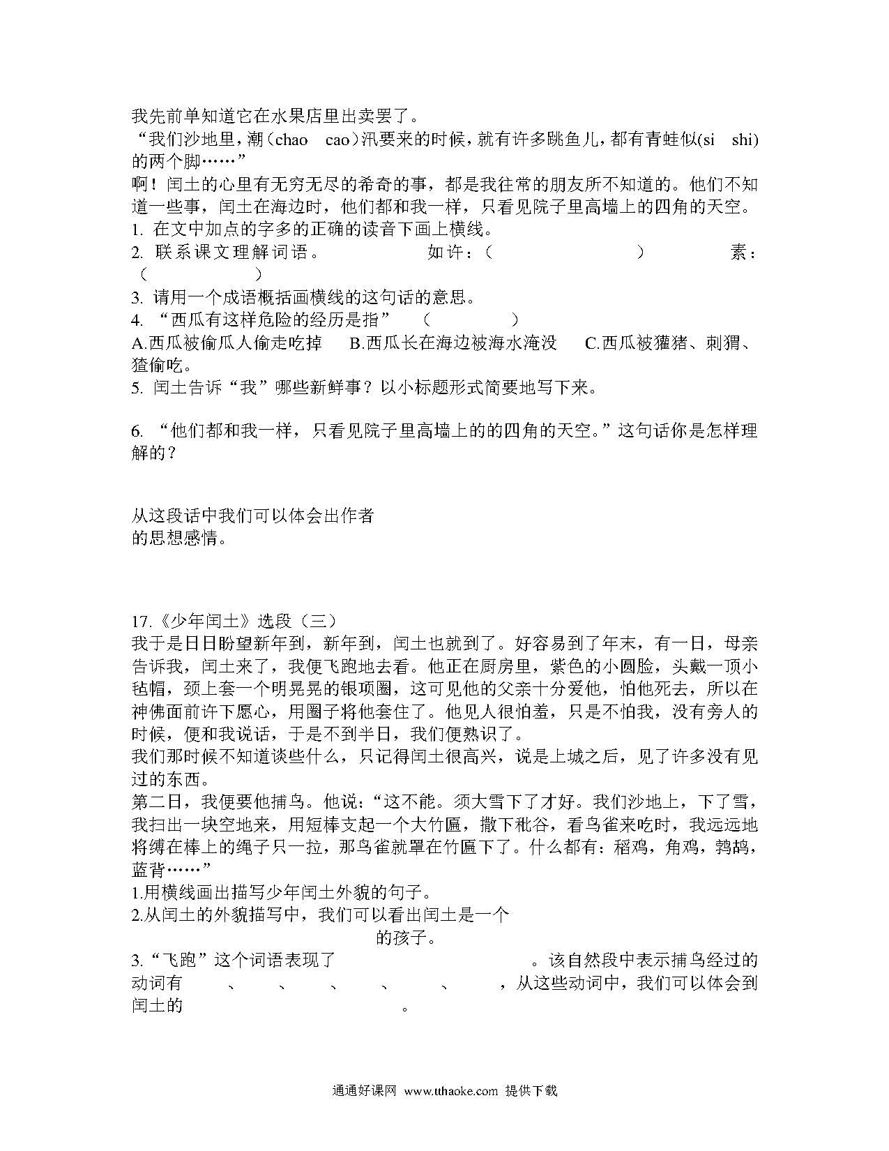 2022年部编版六年级语文上册第一单元课外阅读训练题附答案(可下载打印)