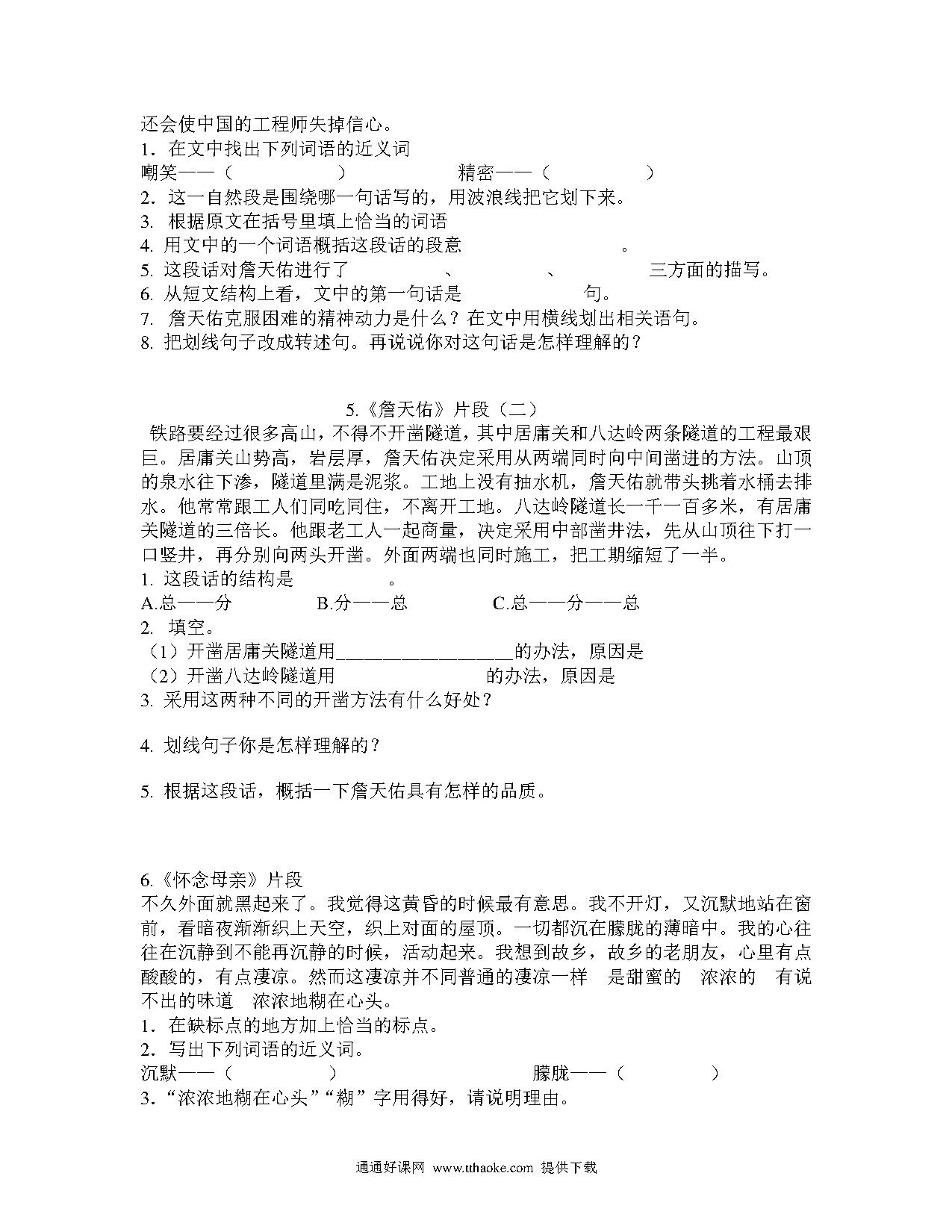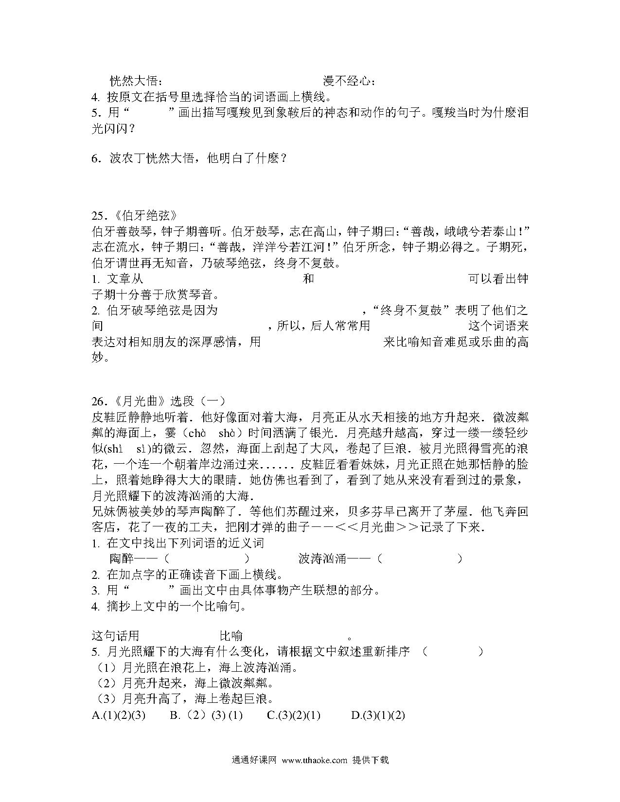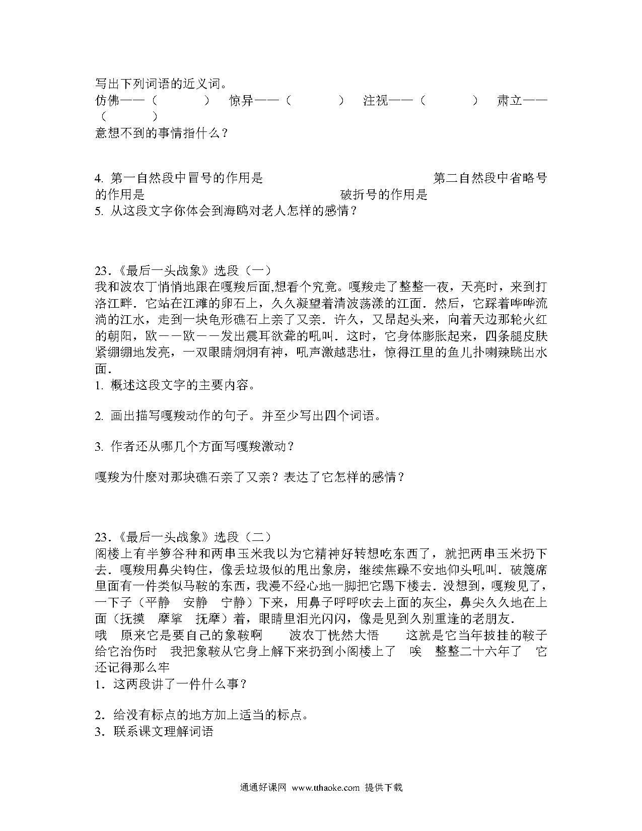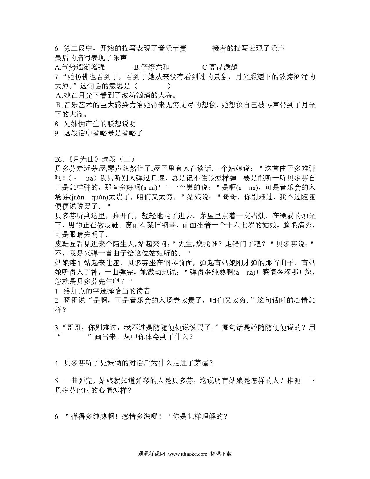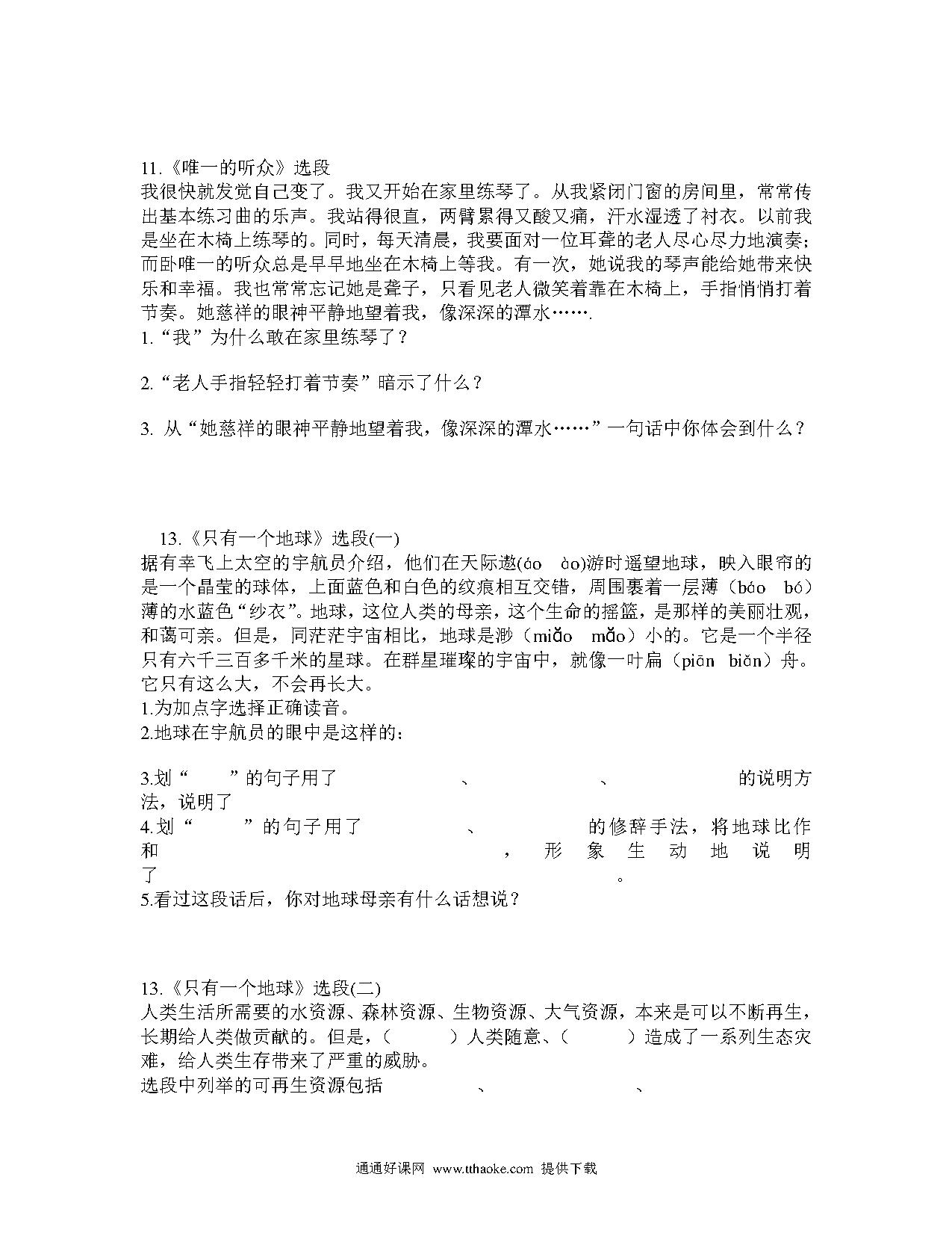 2022年部编版六年级语文上册阅读理解训练题附答案(可下载打印)