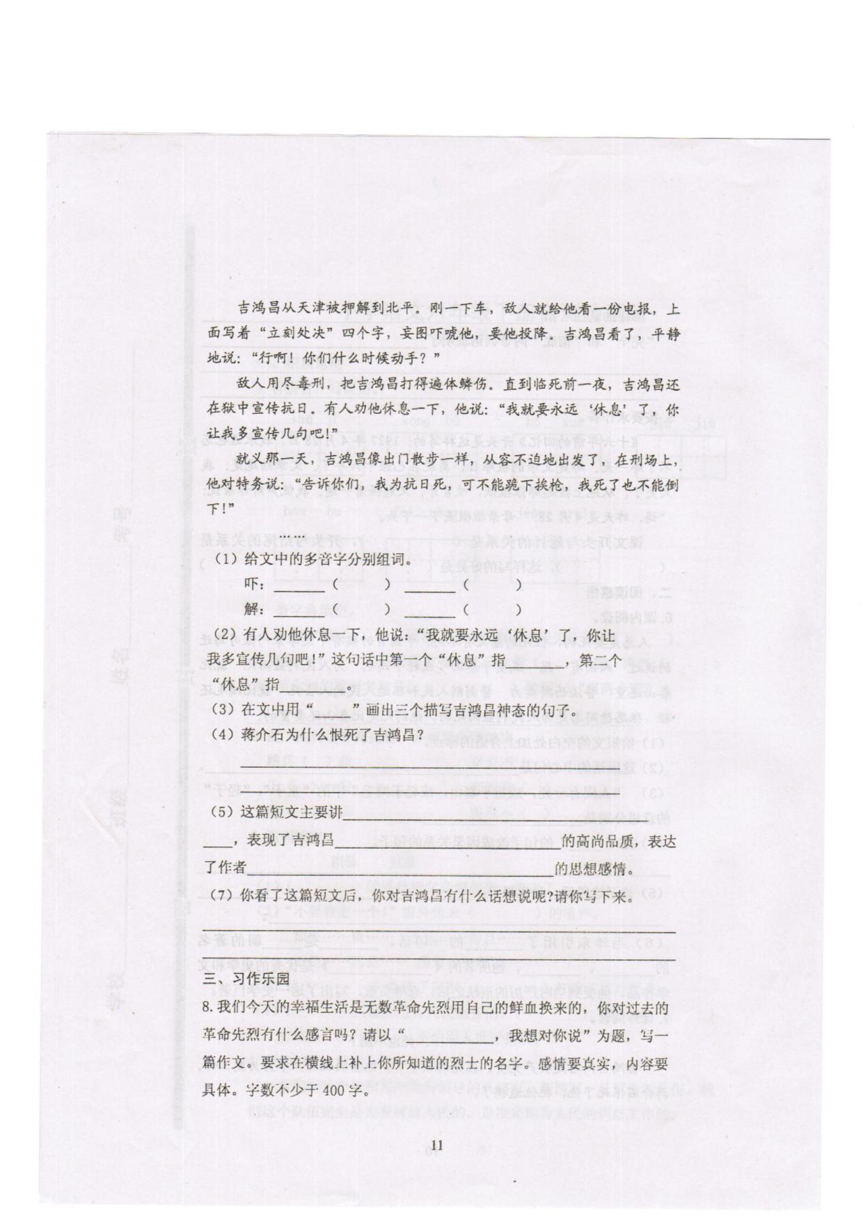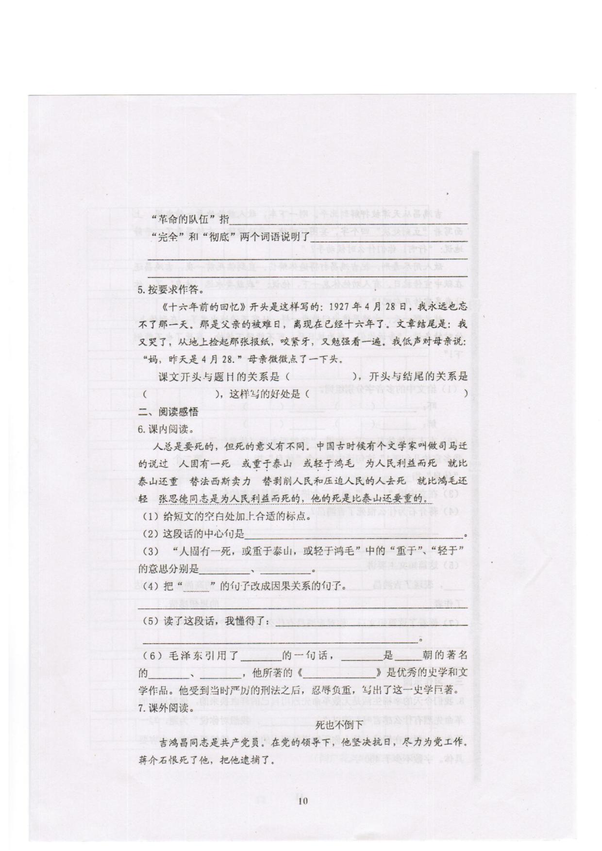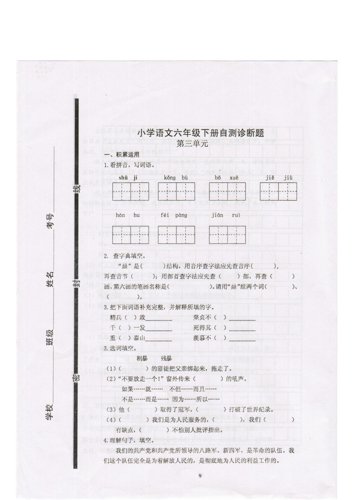 2022年部编版六年级语文上册第二单元检测卷附答案(可下载打印)