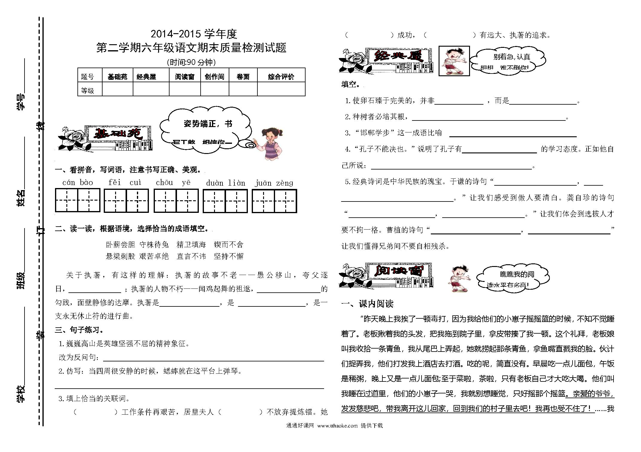 六年级语文下册期末试卷