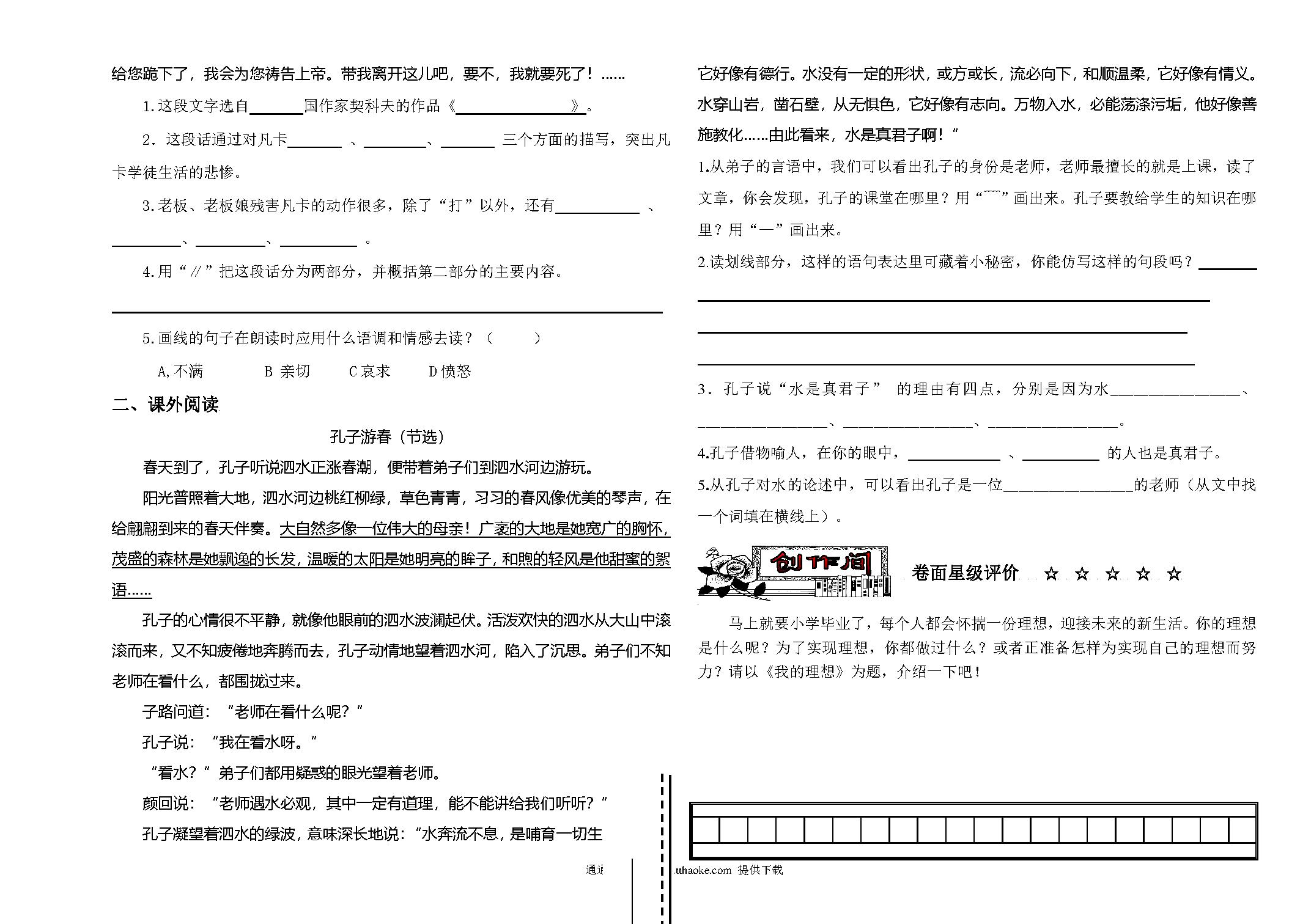六年级语文下册期末试卷.pdf