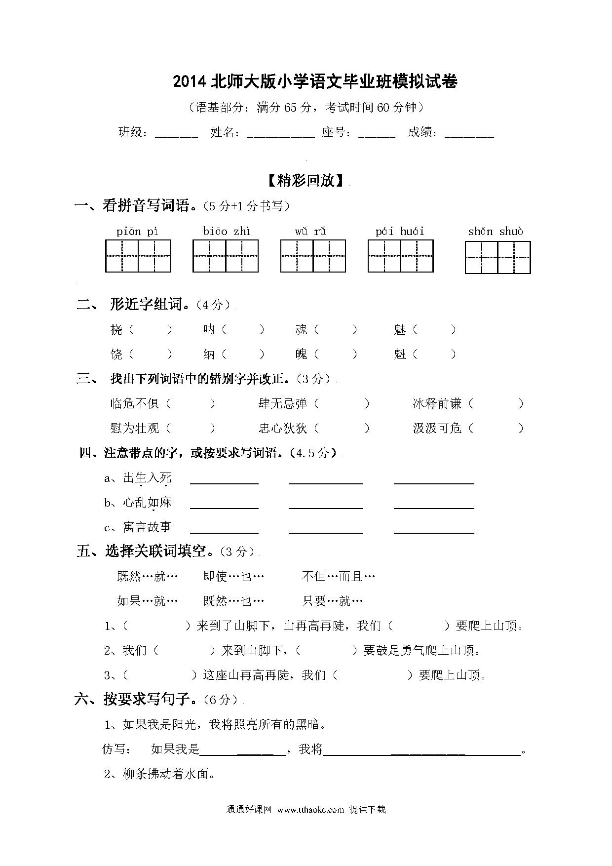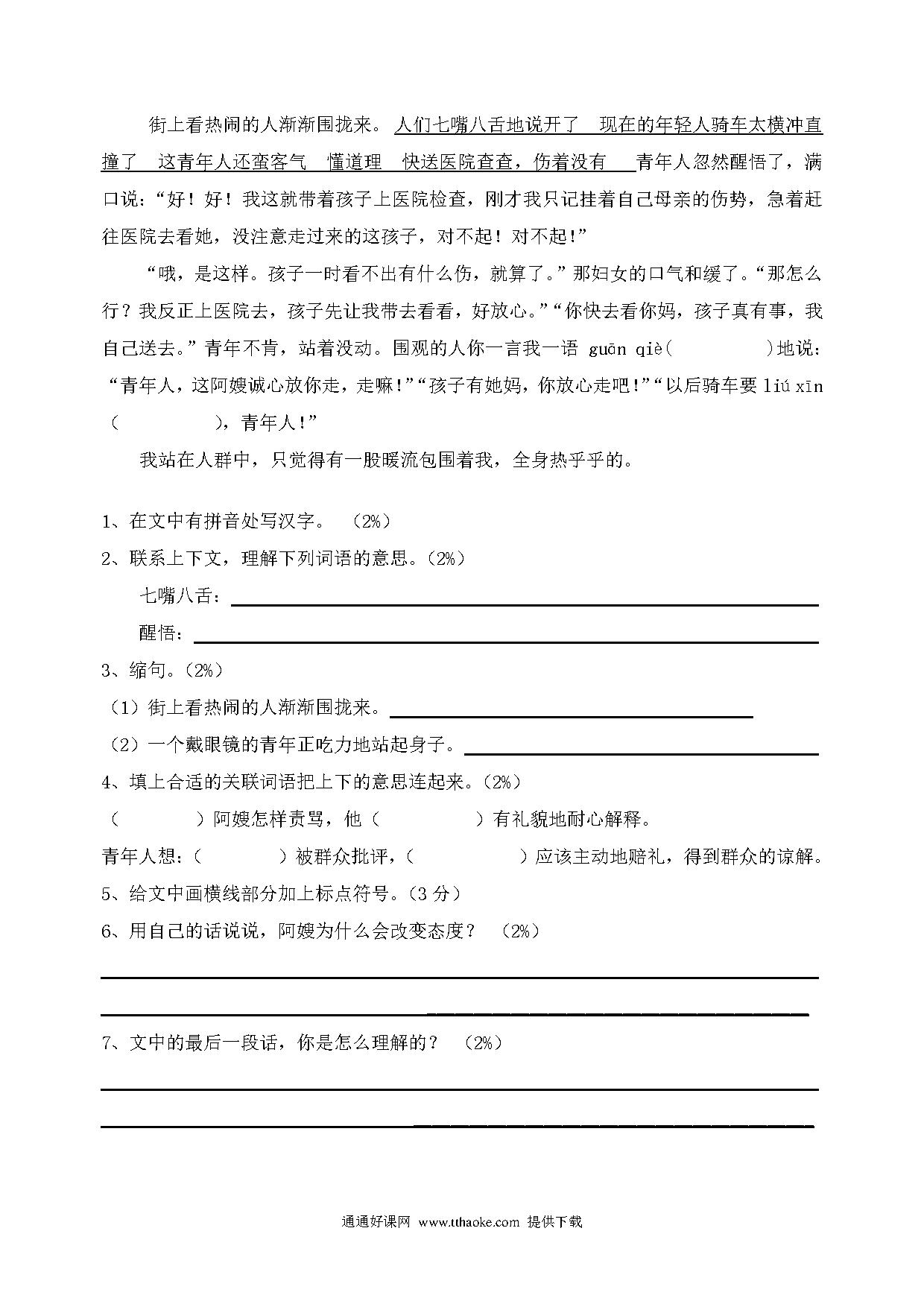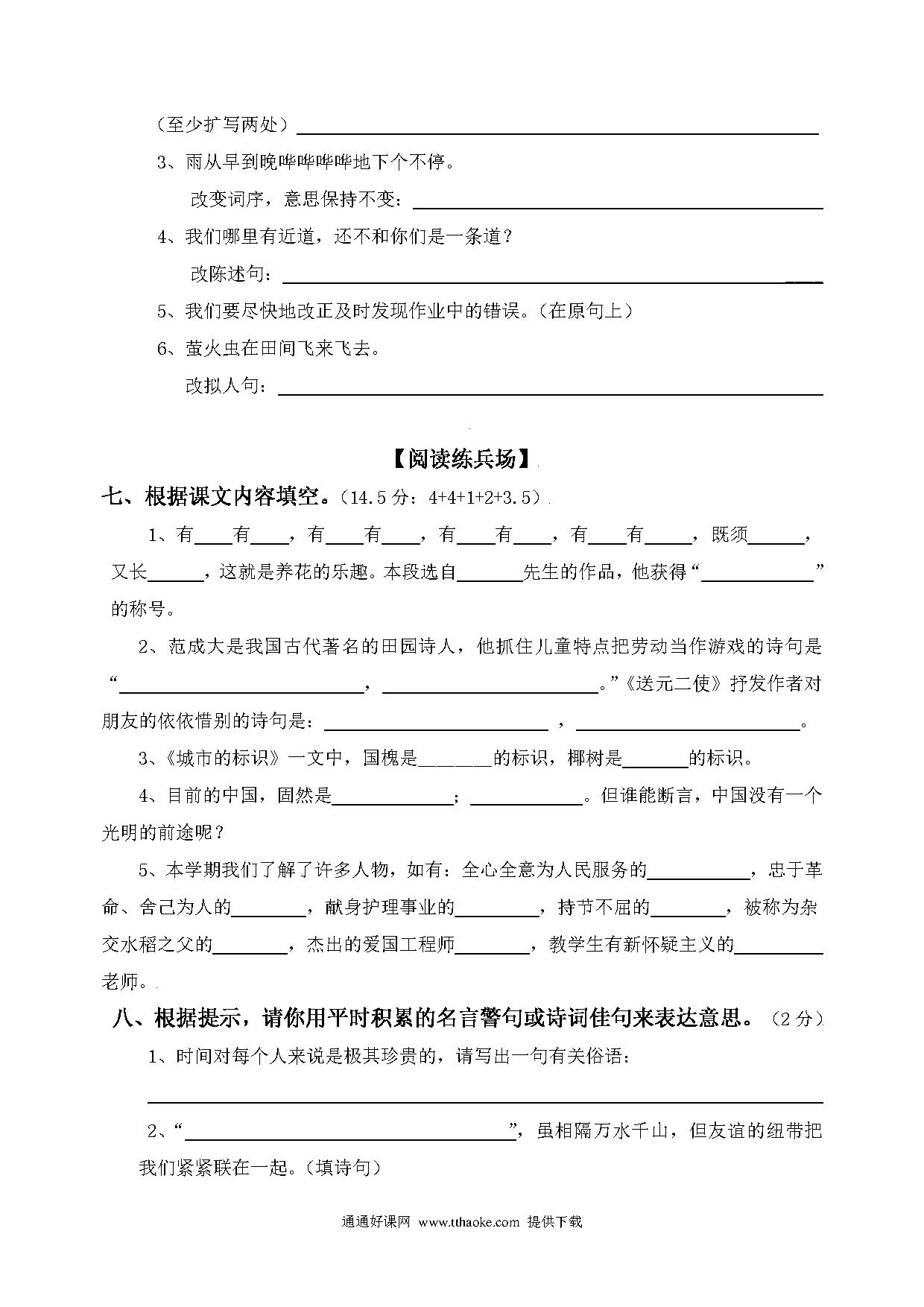 2022年部编版六年级语文上册第二单元检测卷附答案(可下载打印)