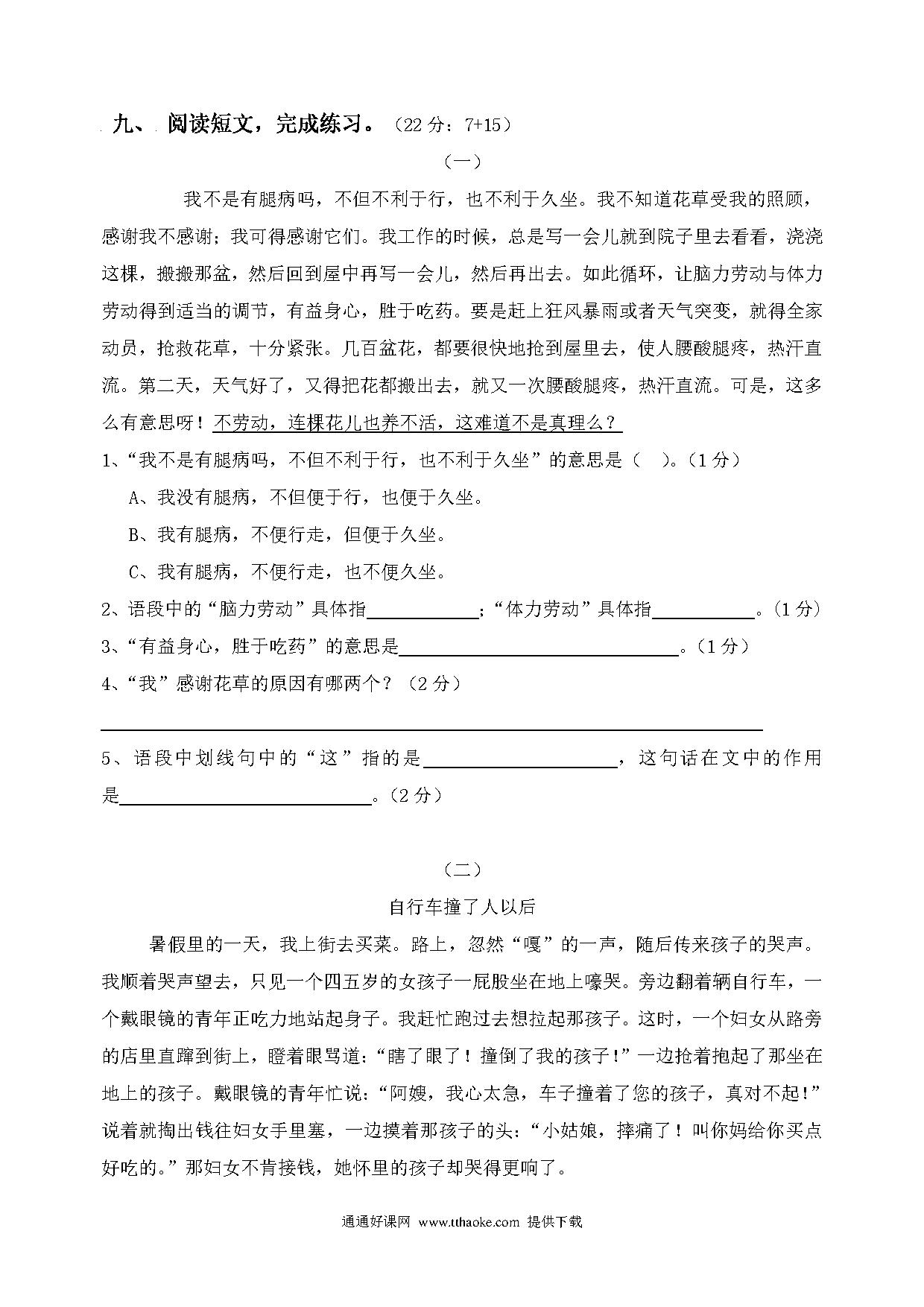 2022年部编版六年级语文上册阅读理解训练题八则附答案(可下载打印)