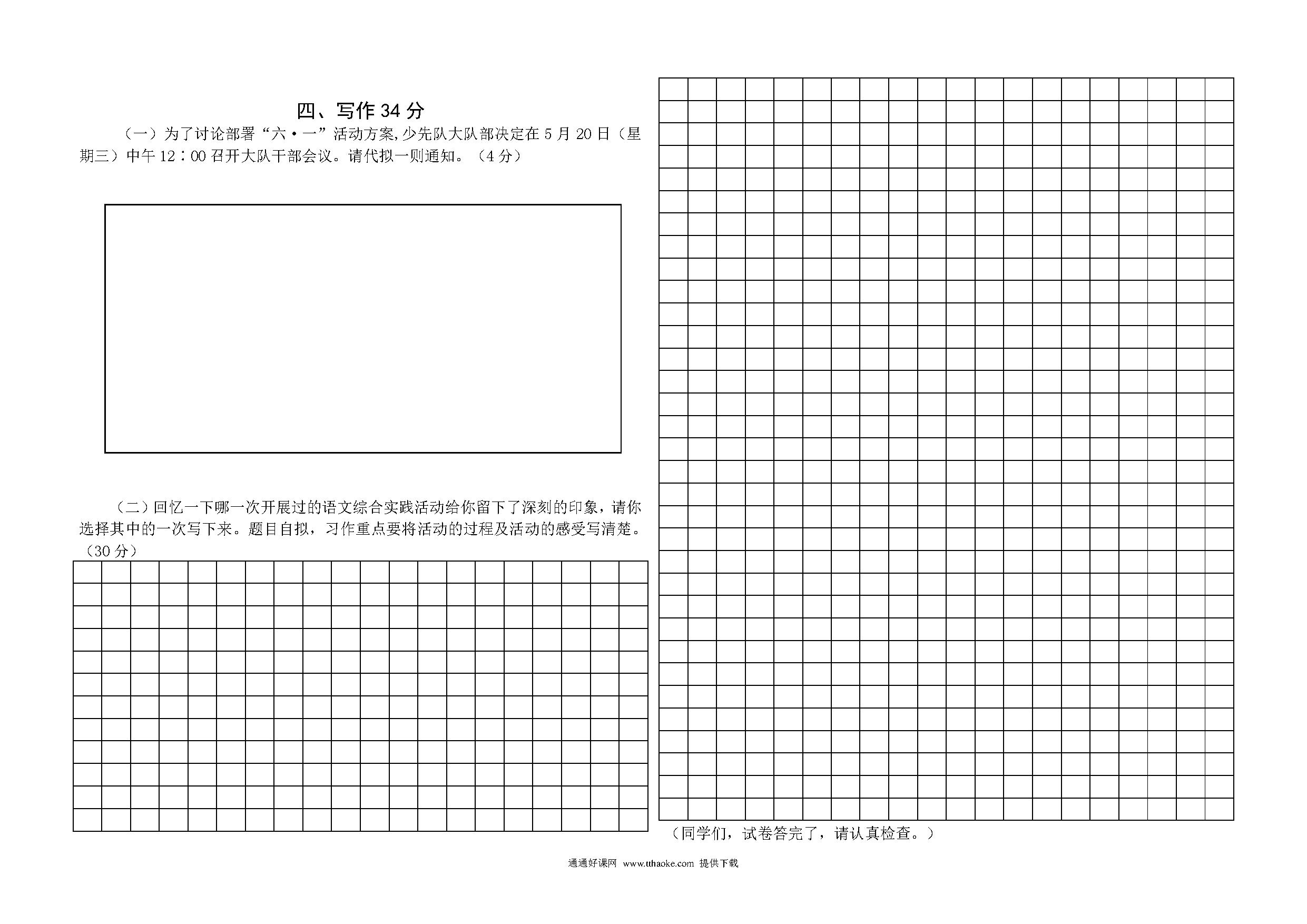 2022年部编版六年级语文上册第二单元检测卷附答案(可下载打印)