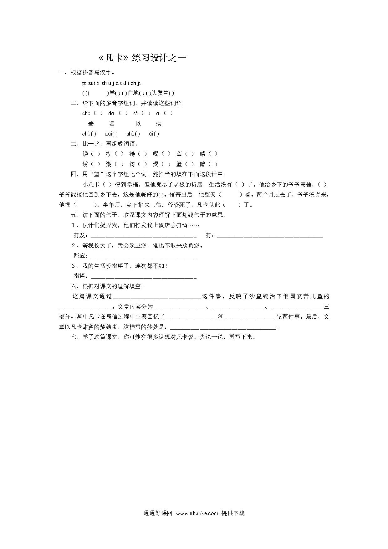 2022年部编版六年级语文上册阅读理解练习题7篇附答案(可下载打印)