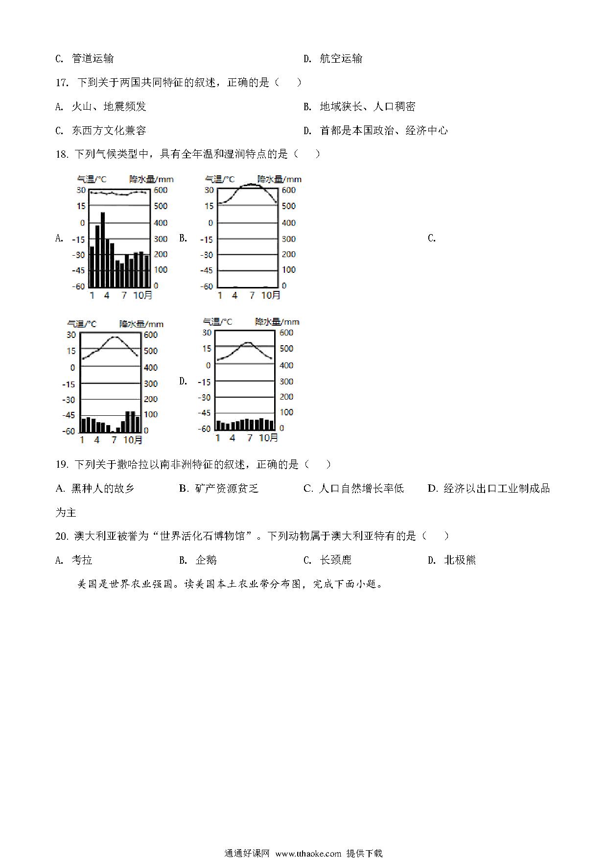 2022年内蒙古通辽市中考地理真题(原卷版)