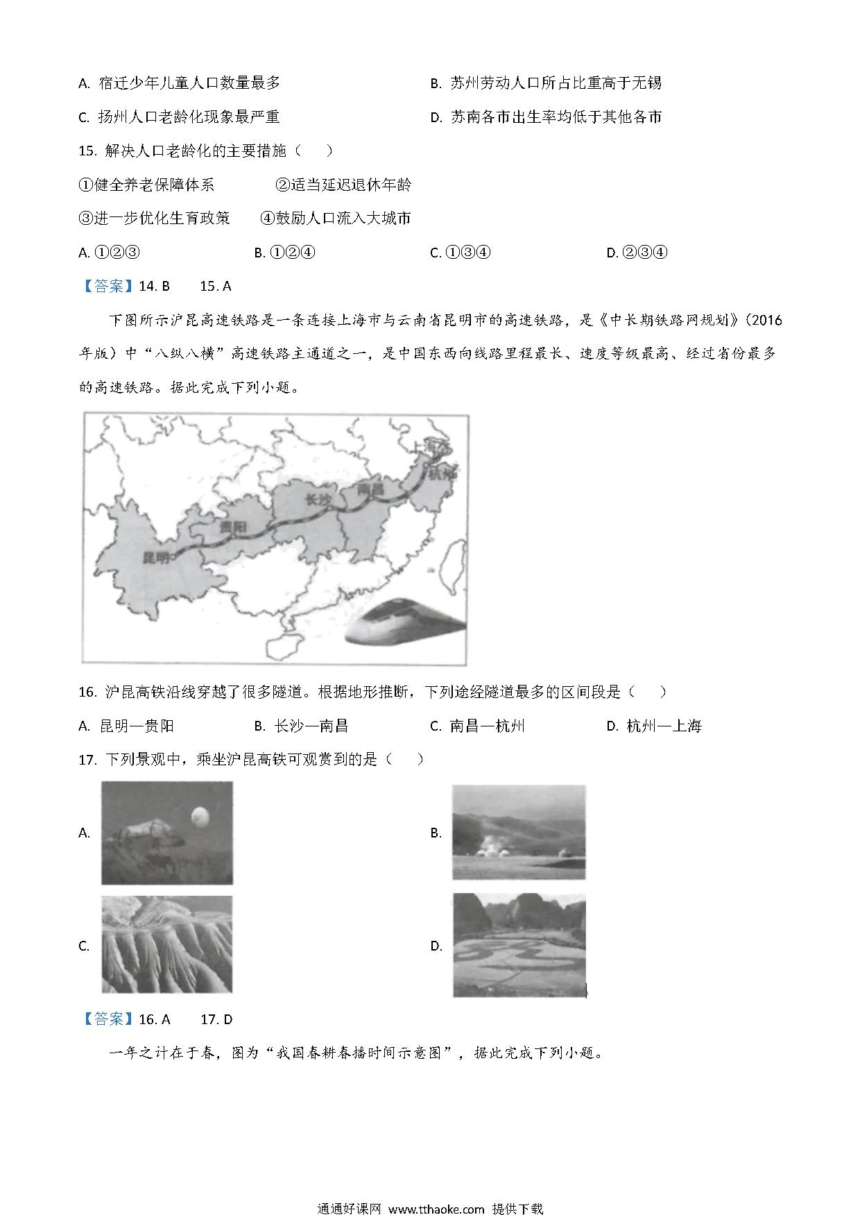 2021年江苏省苏州市中考地理真题及答案.pdf