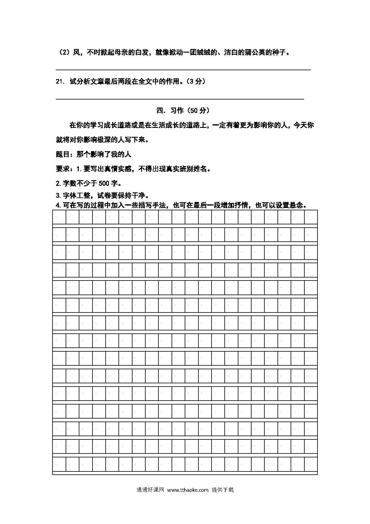 辽宁抚顺市2020年第一学期七年级语文期末试卷