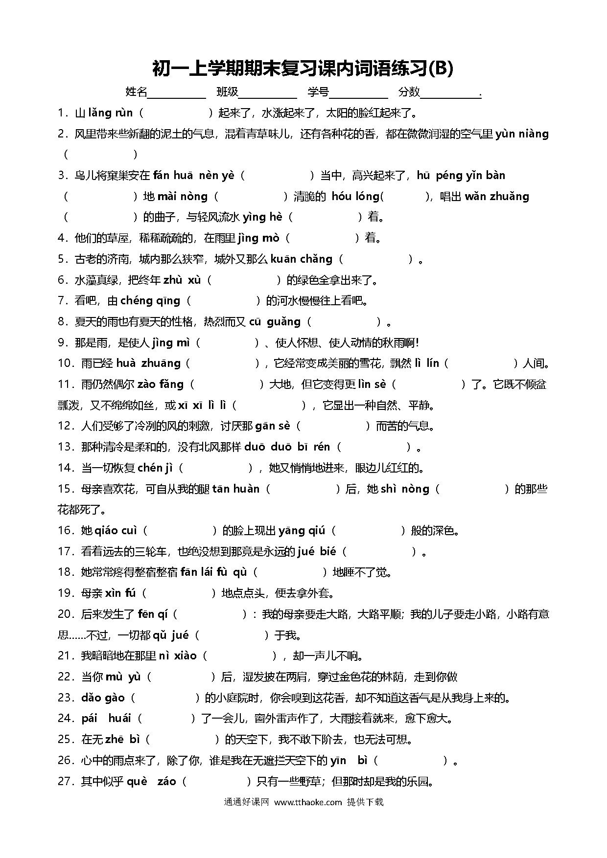 七年级语文上册期末复习题课内词语练习题A.pdf
