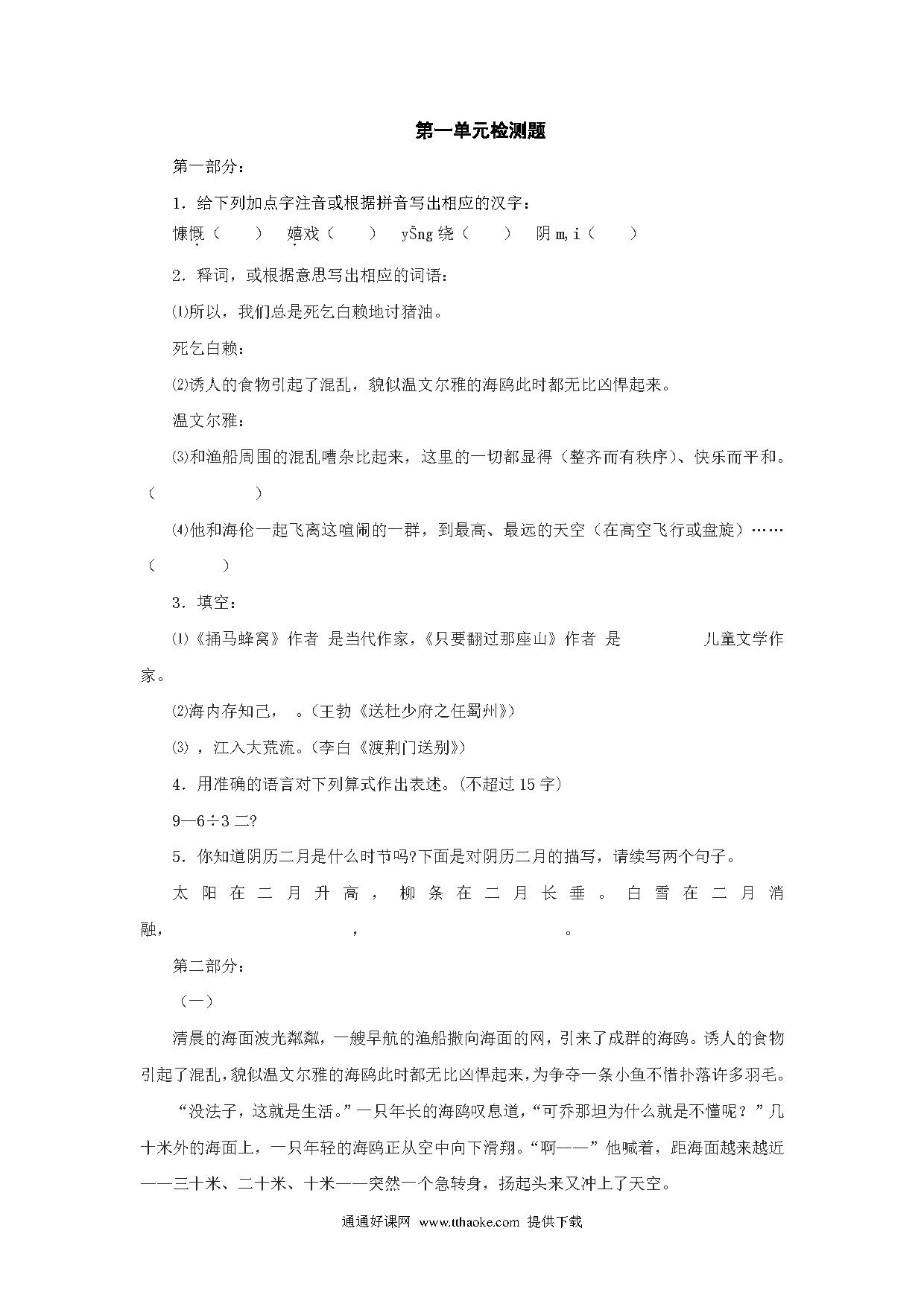 语文:第一单元检测题(鄂教版七年级上).pdf