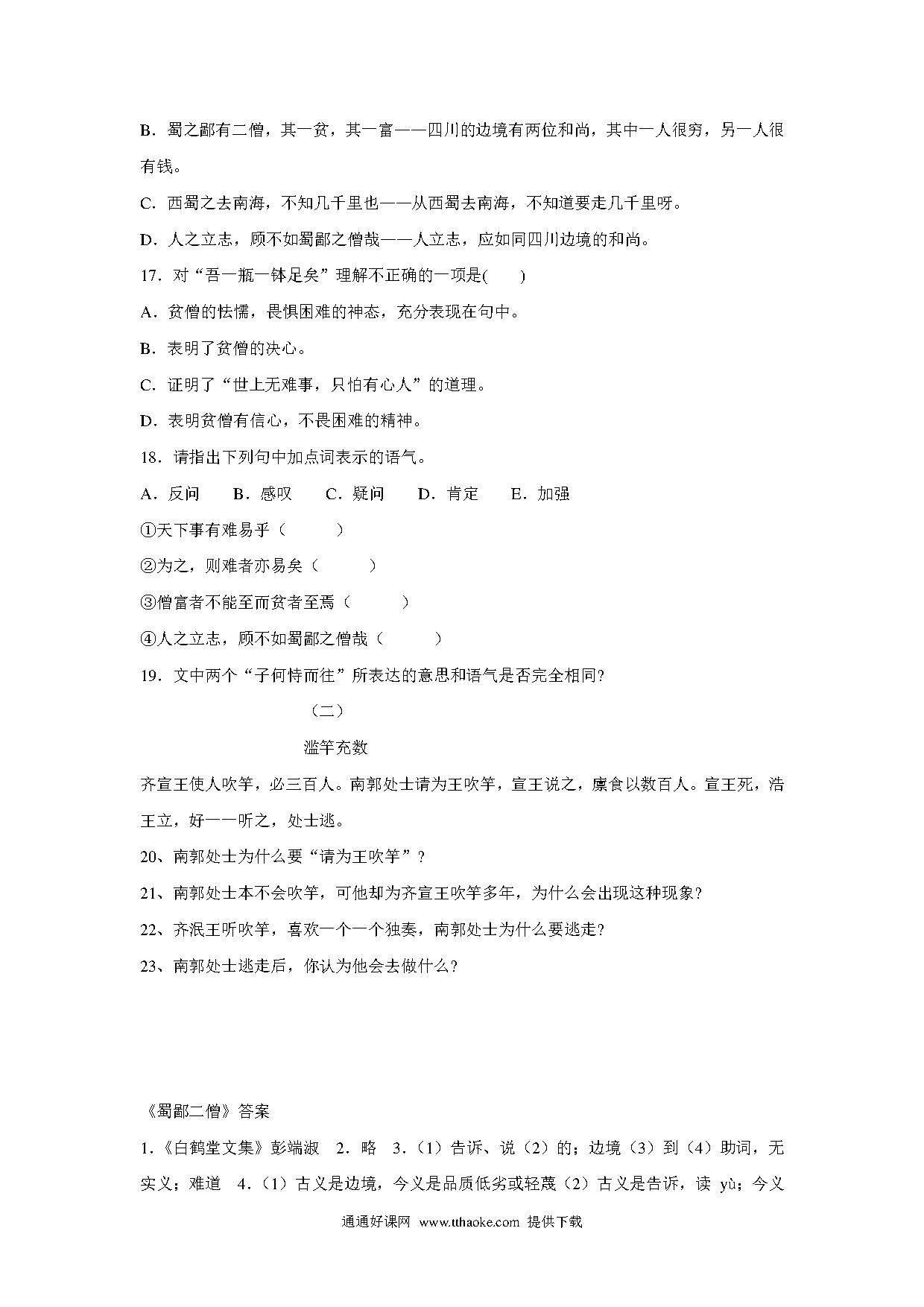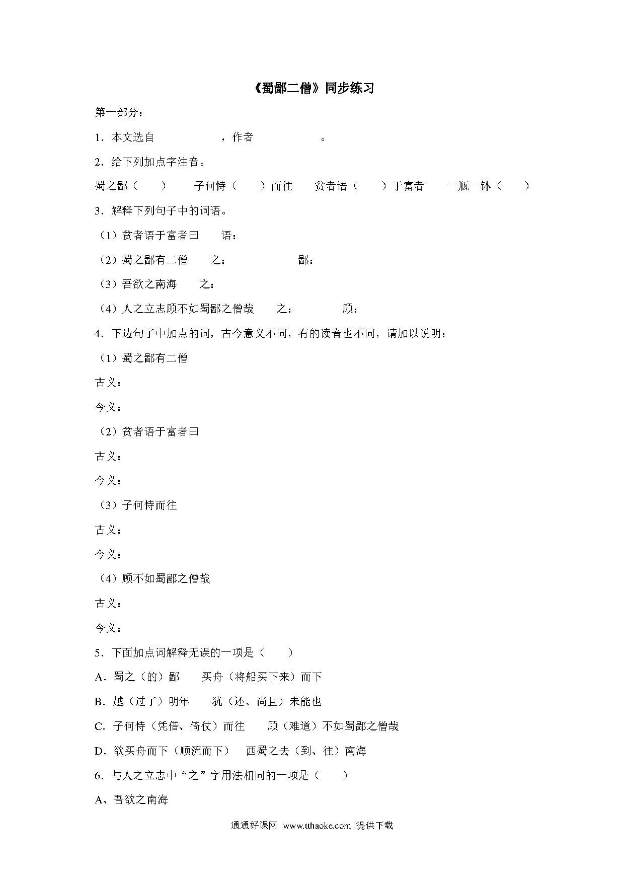 语文:第26课《蜀鄙二僧》同步练习(鄂教版七年级上册).pdf