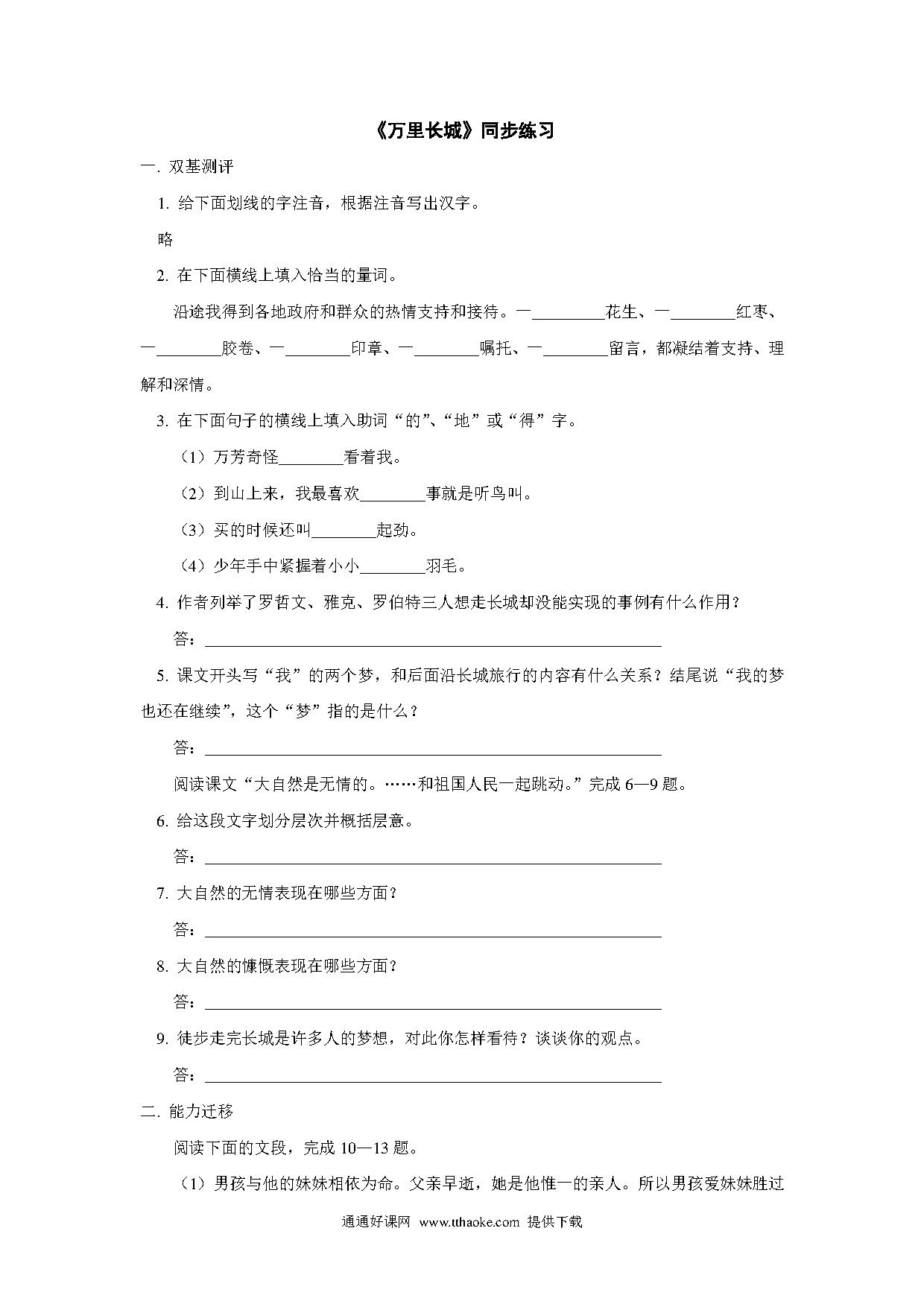 鄂教版七年级上语文:第15课《万里长城》同步练习
