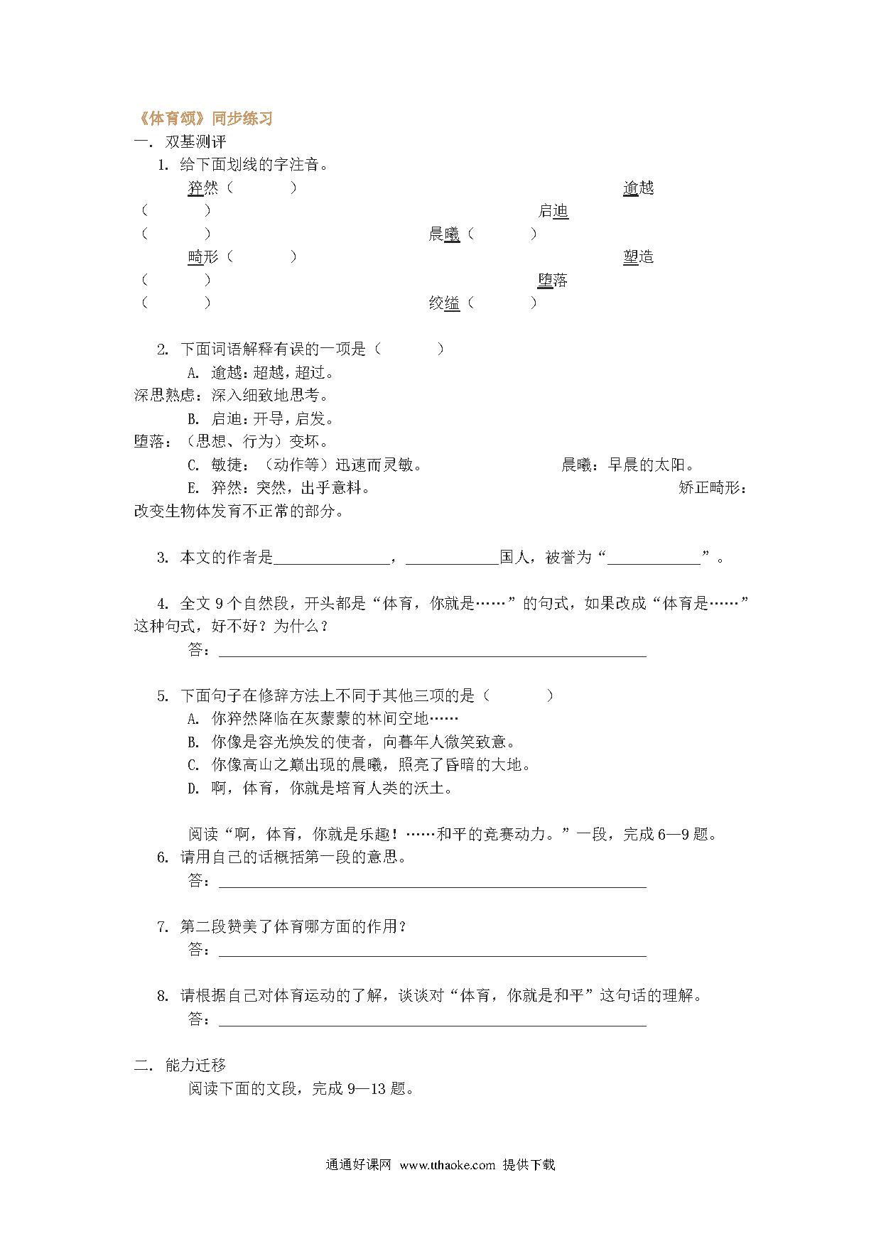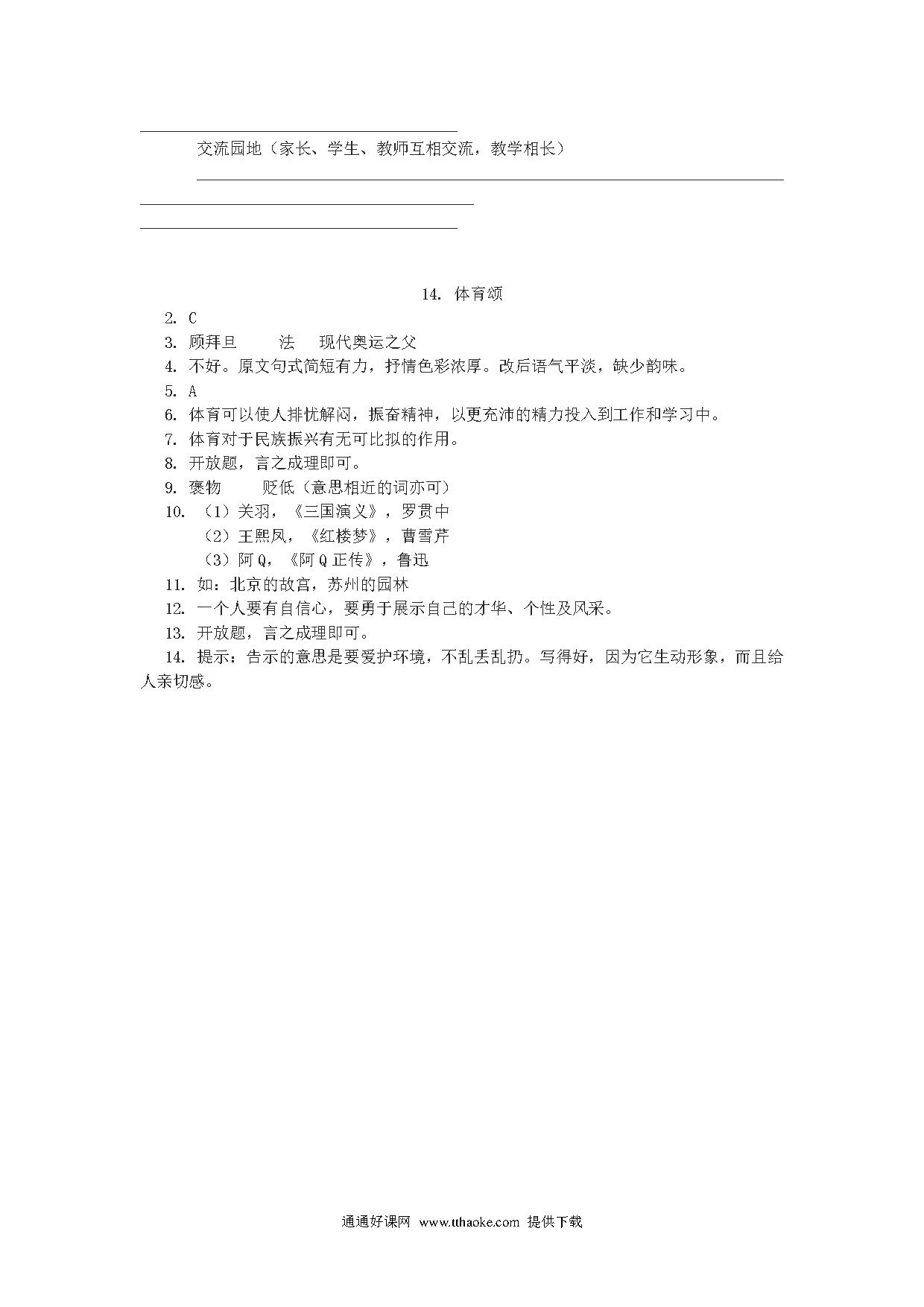 语文:第14课《体育颂》同步练习(鄂教版七年级上).pdf
