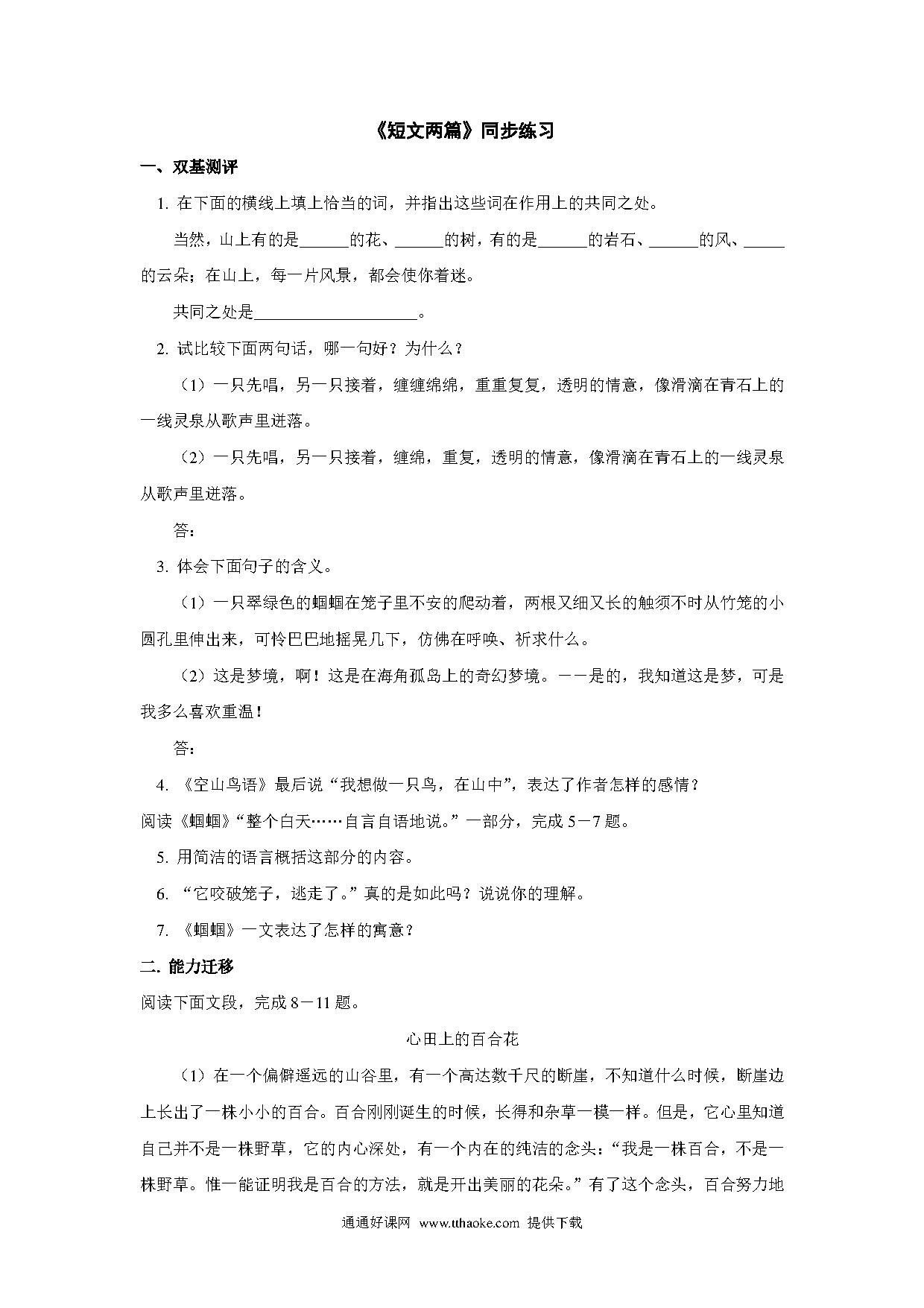 语文:第7课《短文两篇》同步练习(鄂教版七年级上).pdf