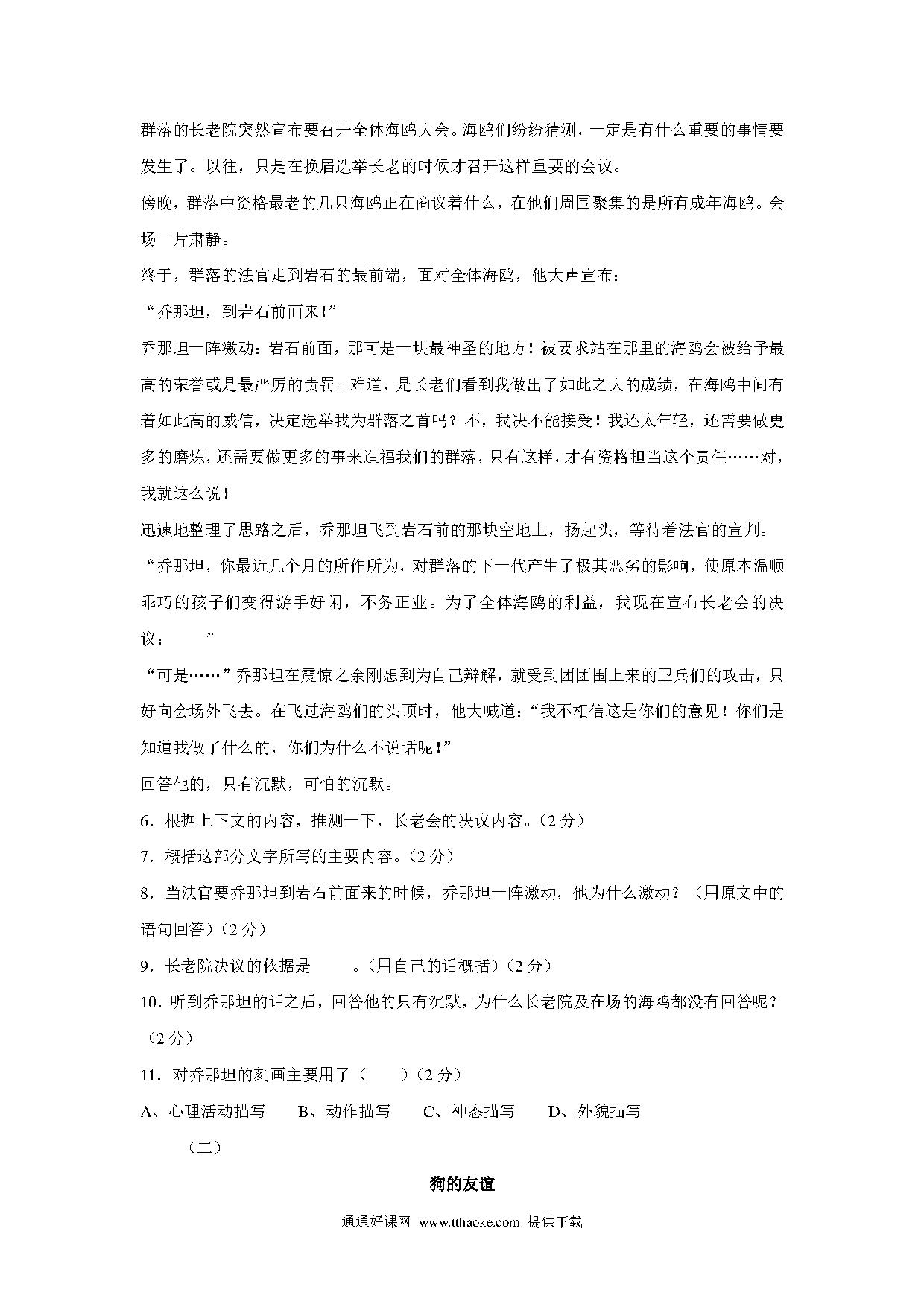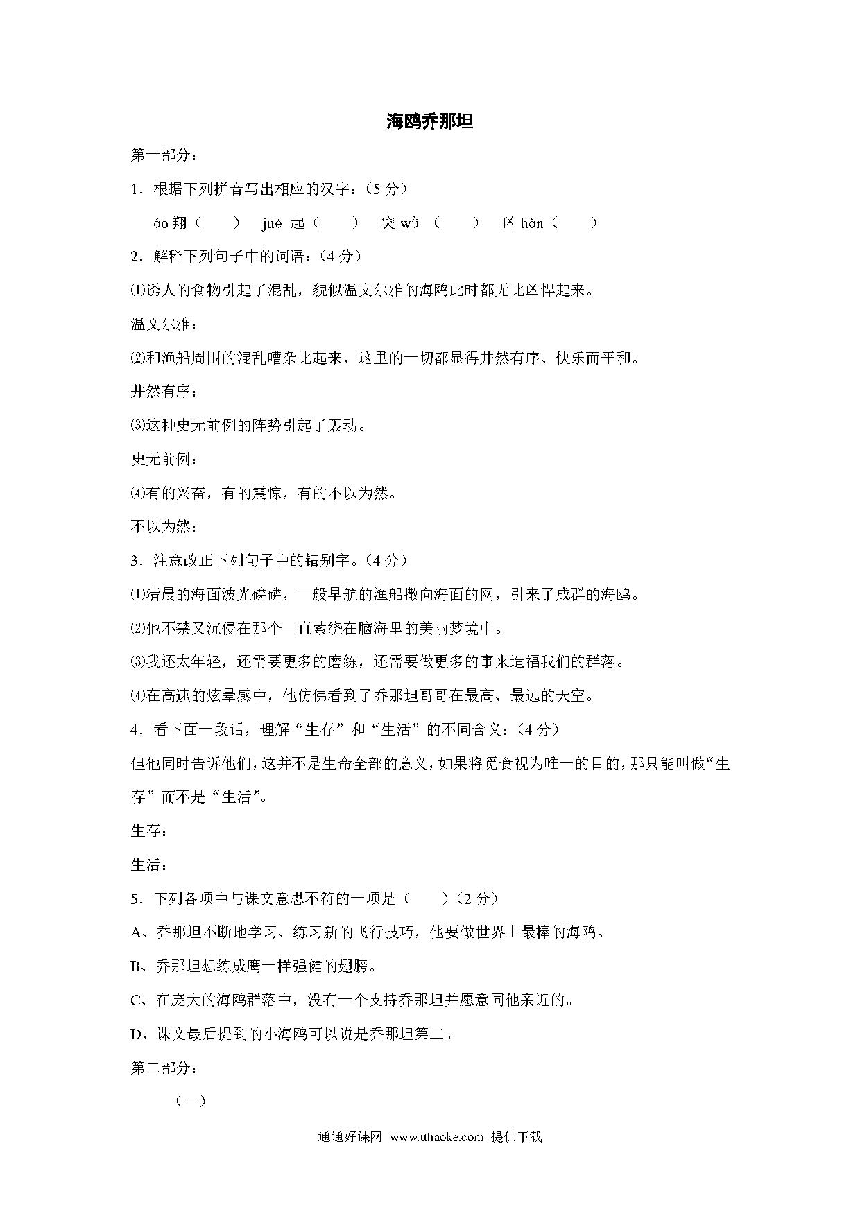 语文:第3课《海鸥乔那坦》同步练习(鄂教版七年级上).pdf
