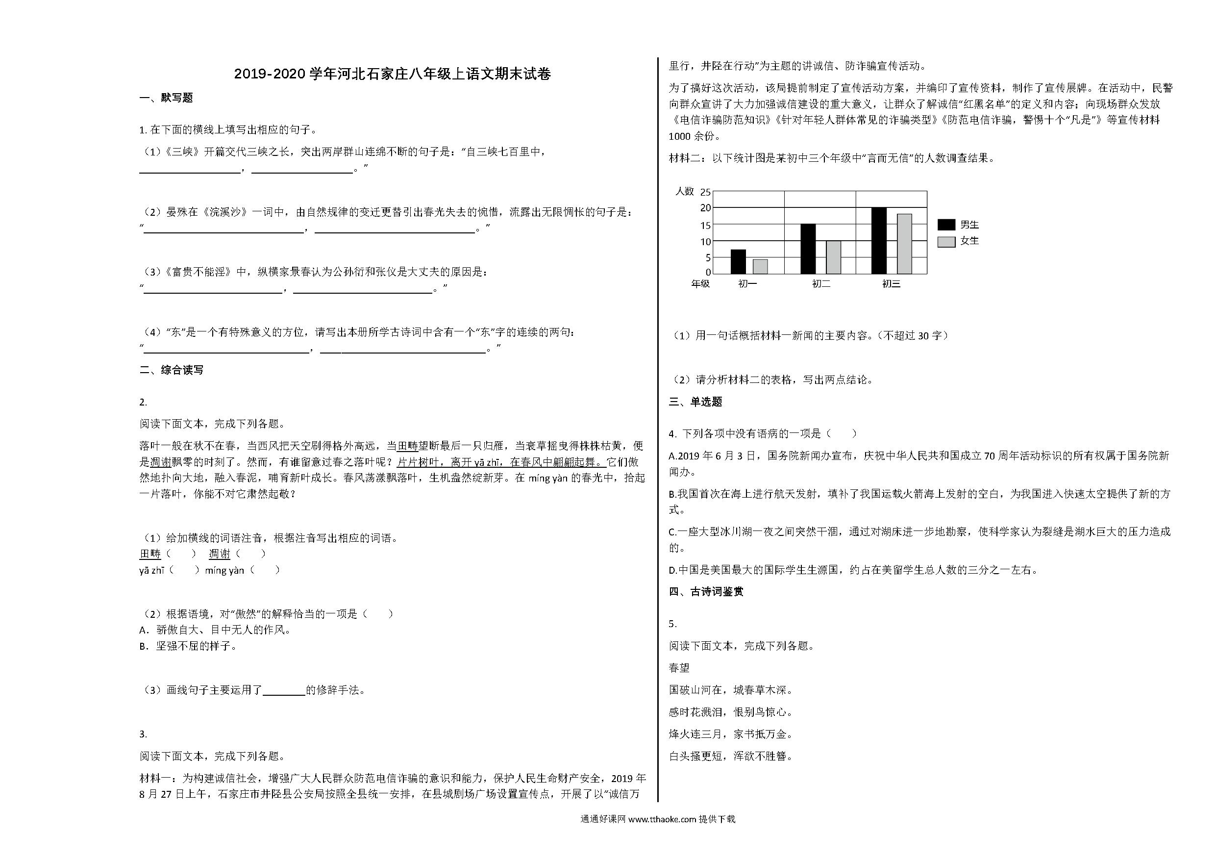 石家庄市2019-2020学年八年级语文上册期末试卷.pdf