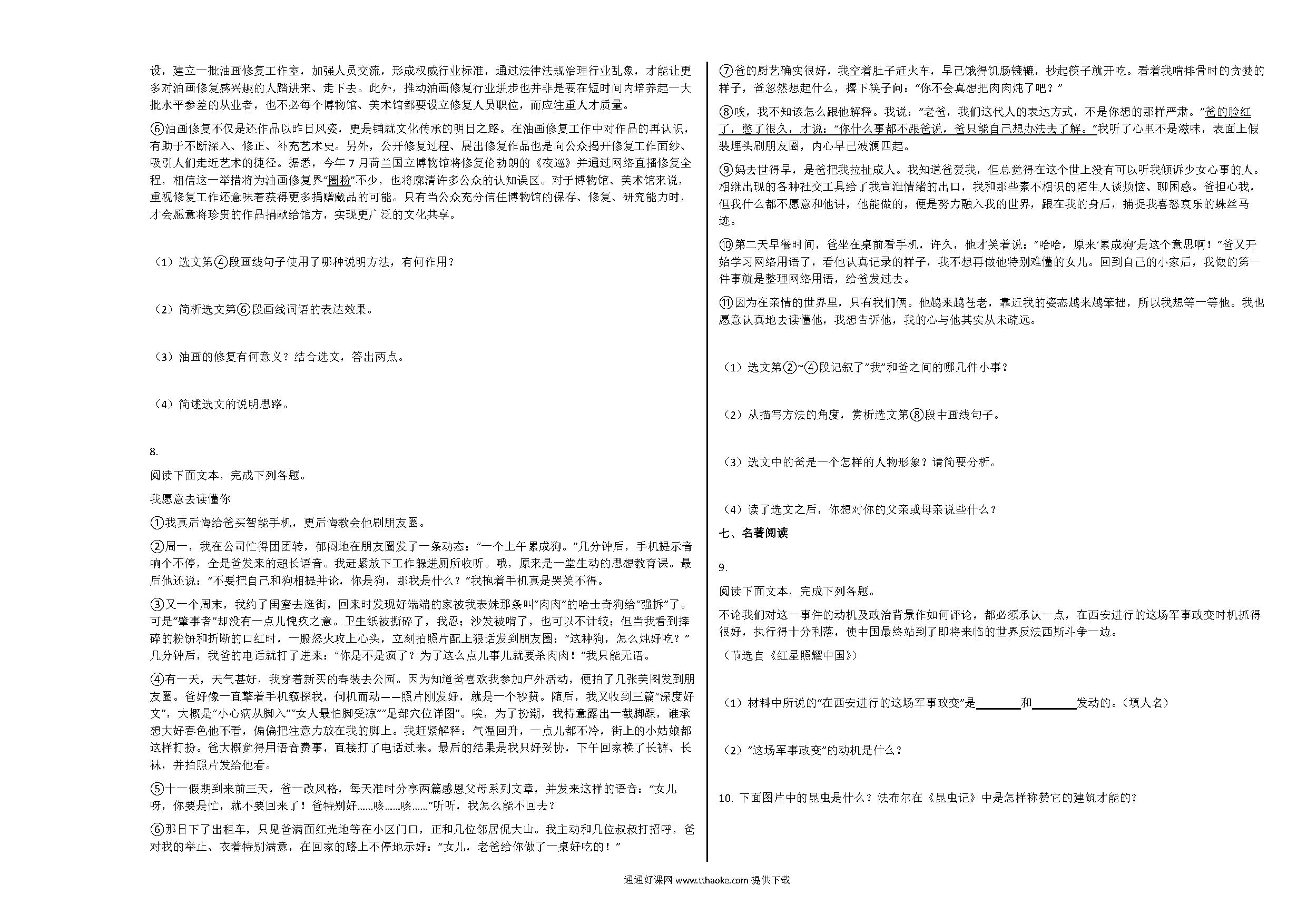 吉林四平市2020年第一学期八年级语文期末试卷