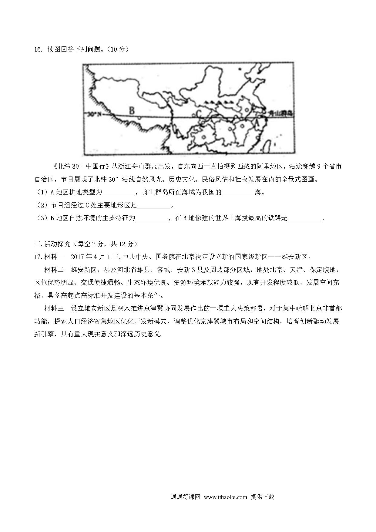 2022年内蒙古通辽市中考地理真题(原卷版)