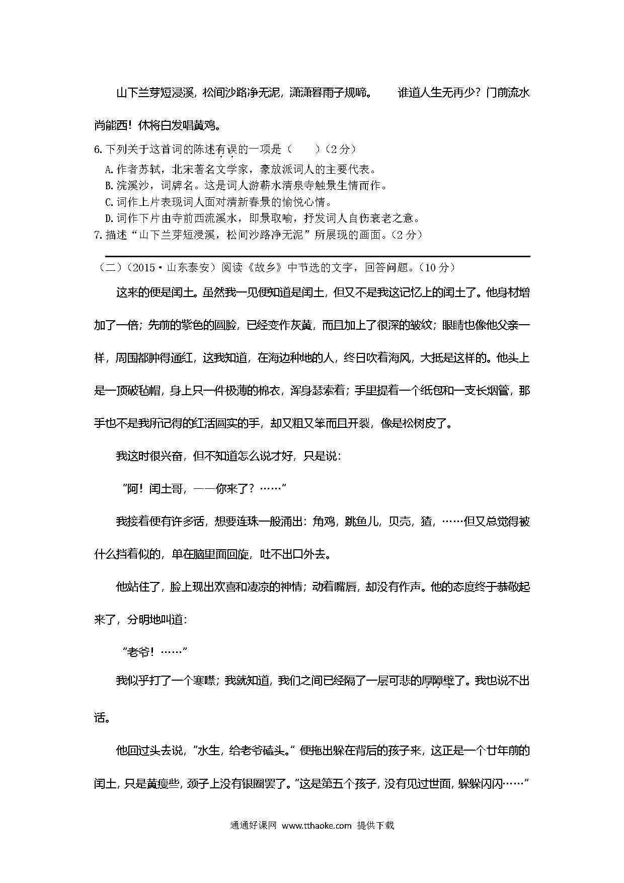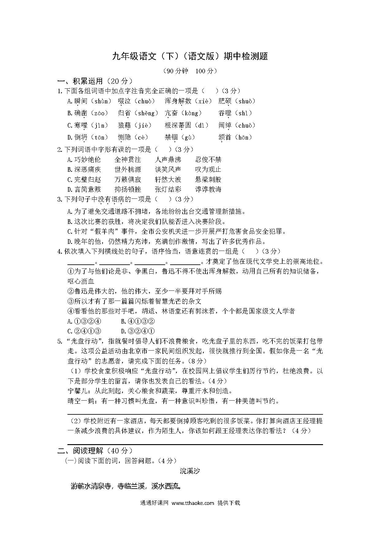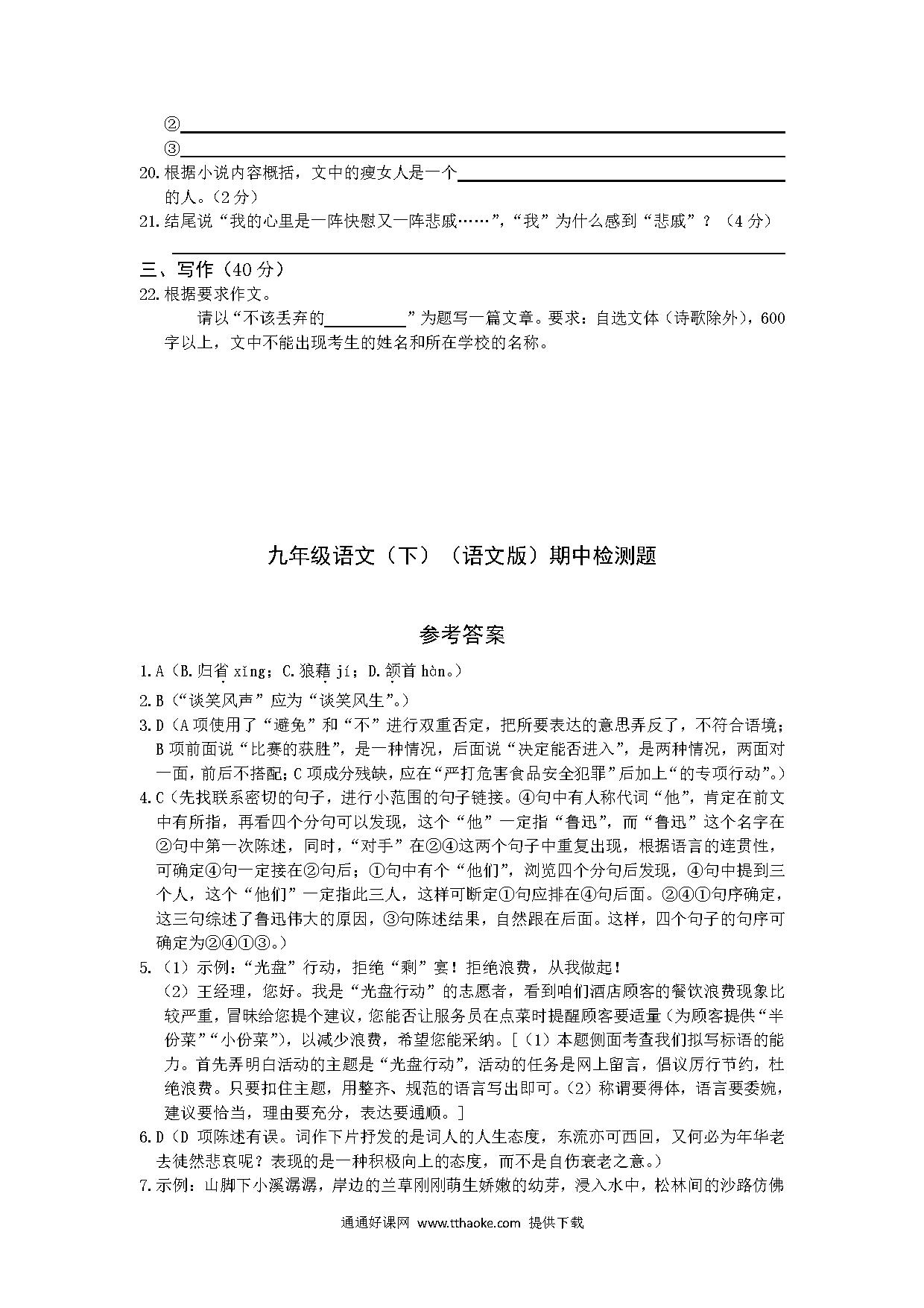 教材全解语文版九年级语文下册期中检测题及答案解析.pdf