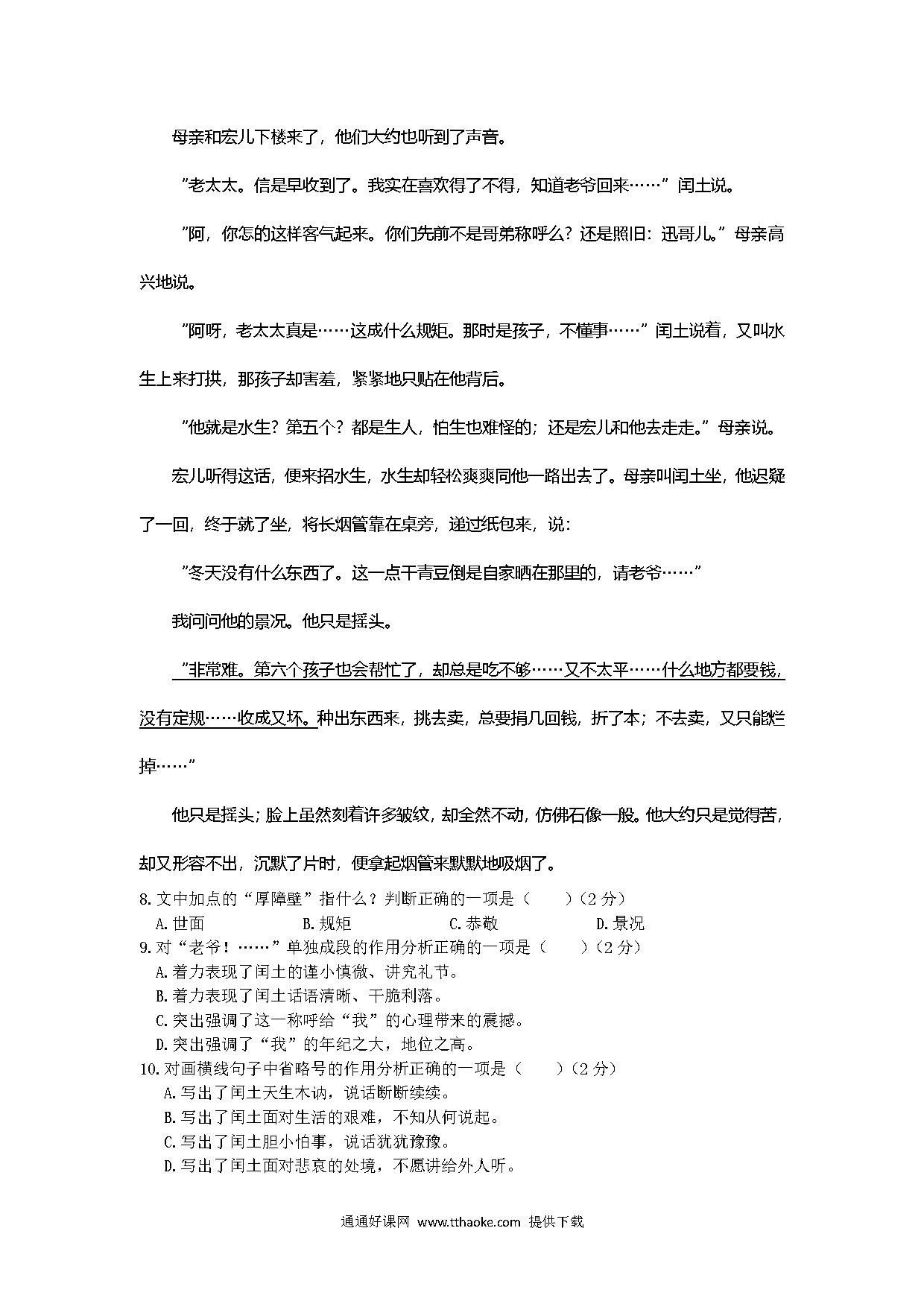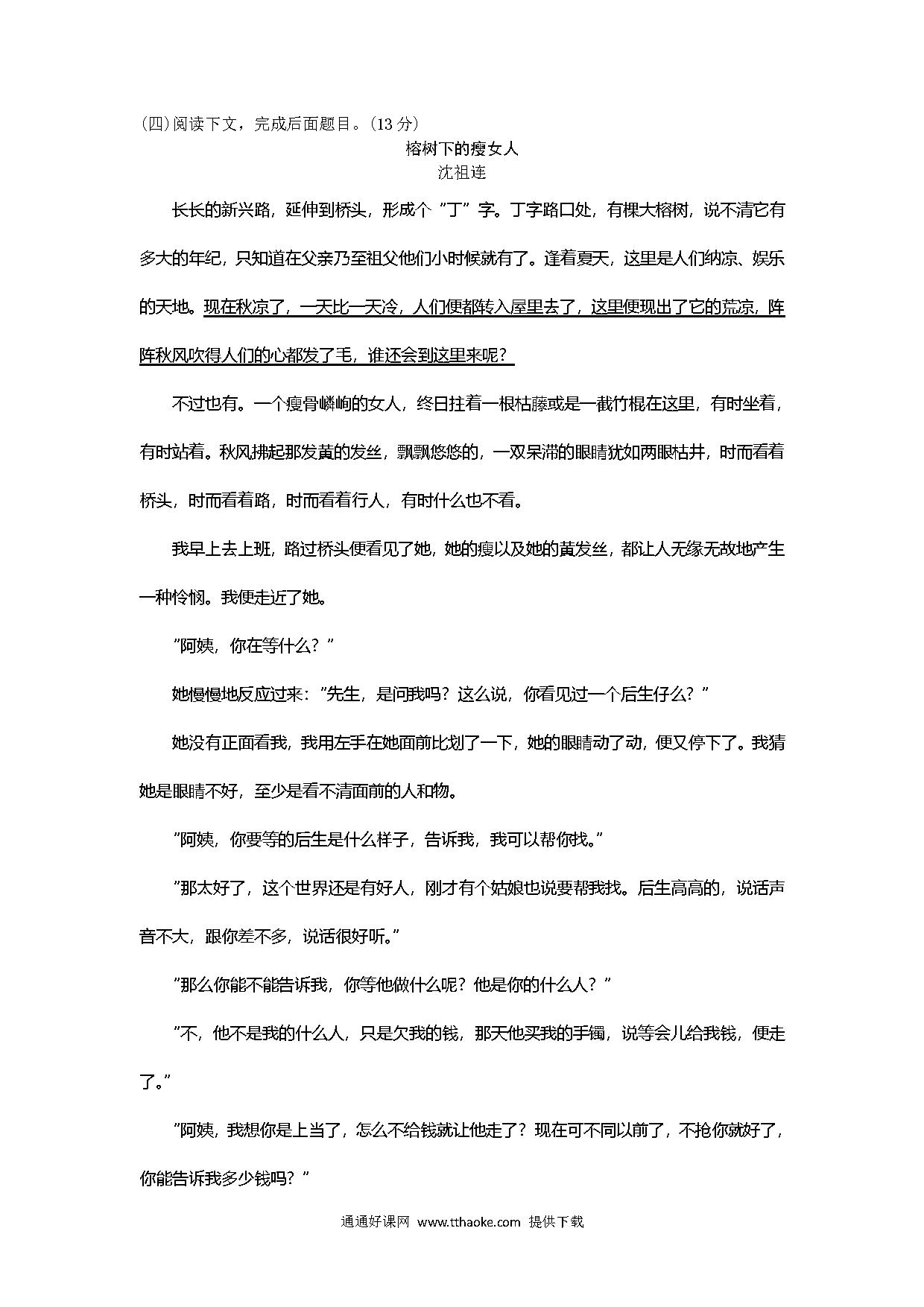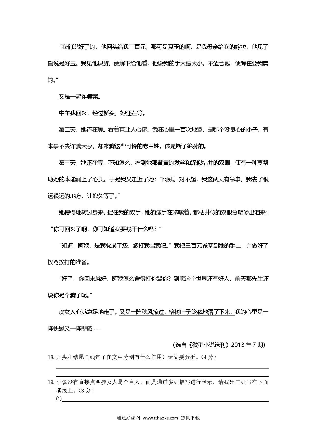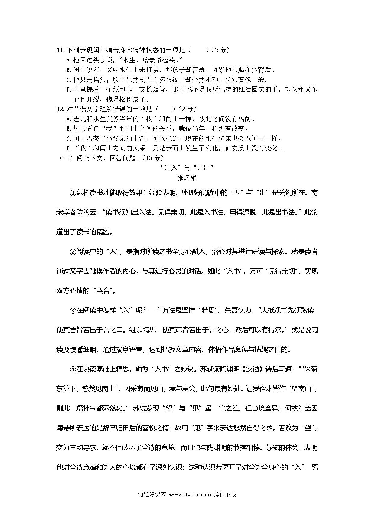 陕西渭南市2020年第一学期九年级语文期末试卷