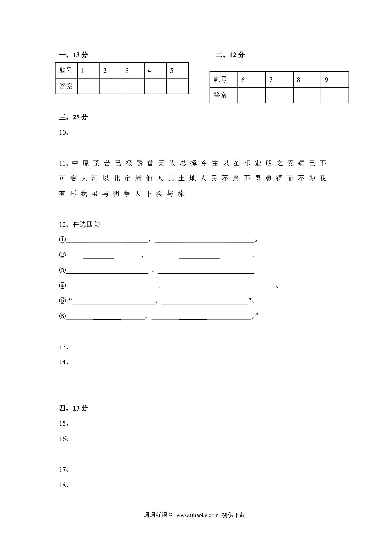 赣州市2014—2015学年第二学期高三语文期中试题及答案