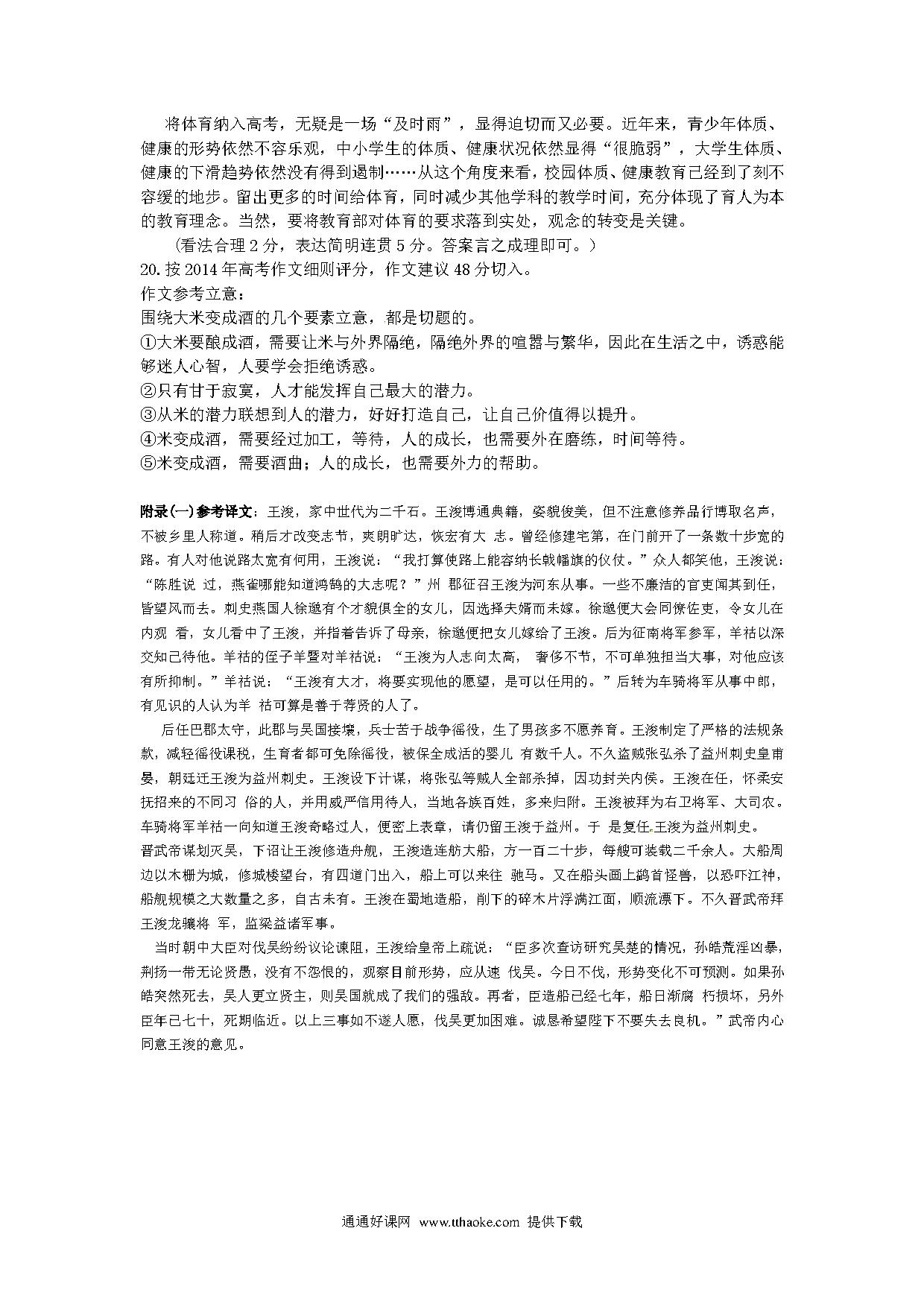 赣州市2014—2015学年第二学期高三语文期中试题及答案